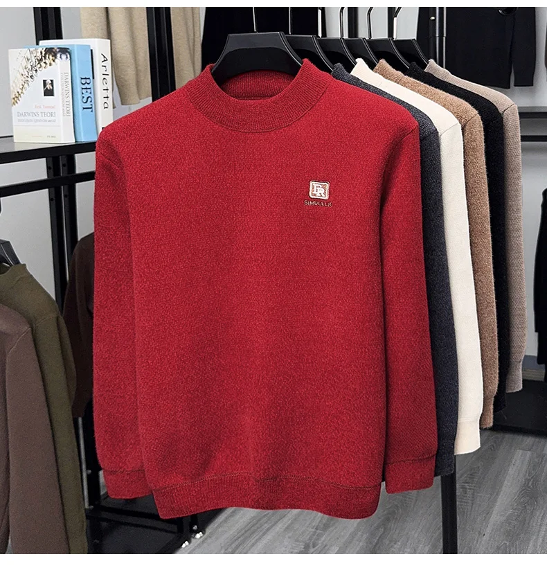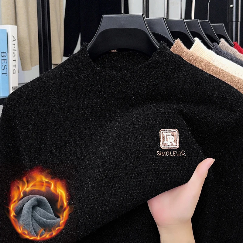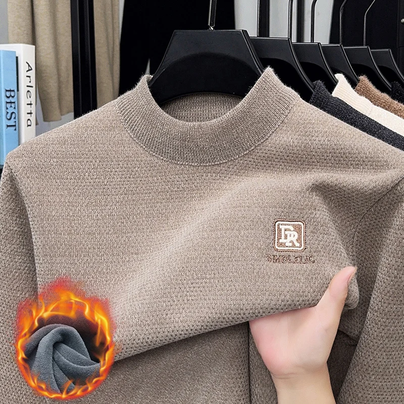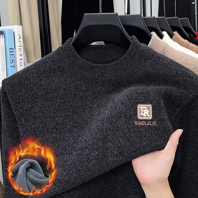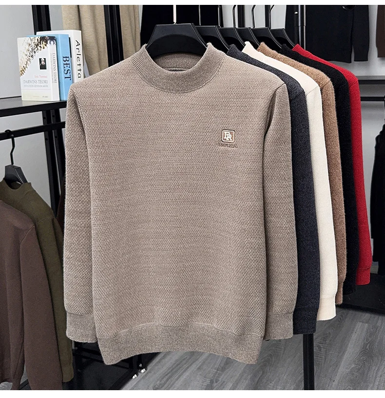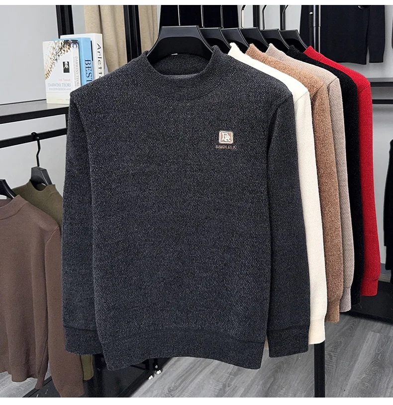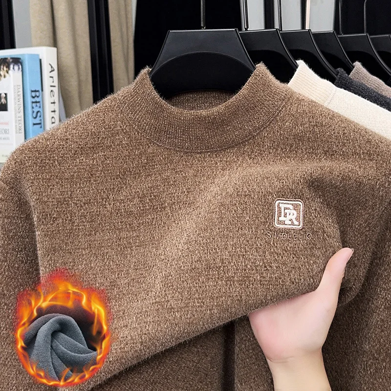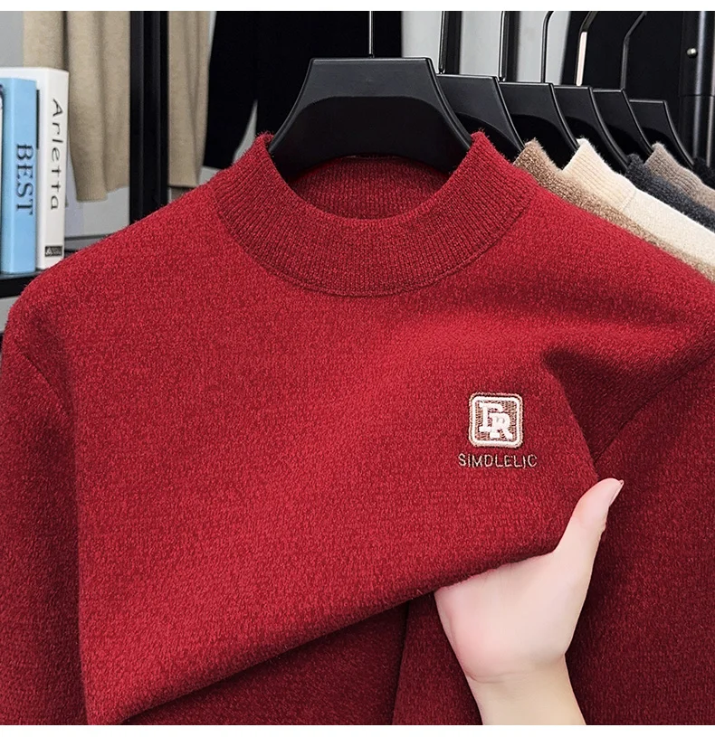 Maglione lavorato a maglia in velluto spesso a collo semi alto da uomo autunno e inverno con maglione base calda con ricamo in velluto integrato 1Maglione lavorato a maglia in velluto spesso a collo semi alto da uomo autunno e inverno con maglione base calda con ricamo in velluto integrato