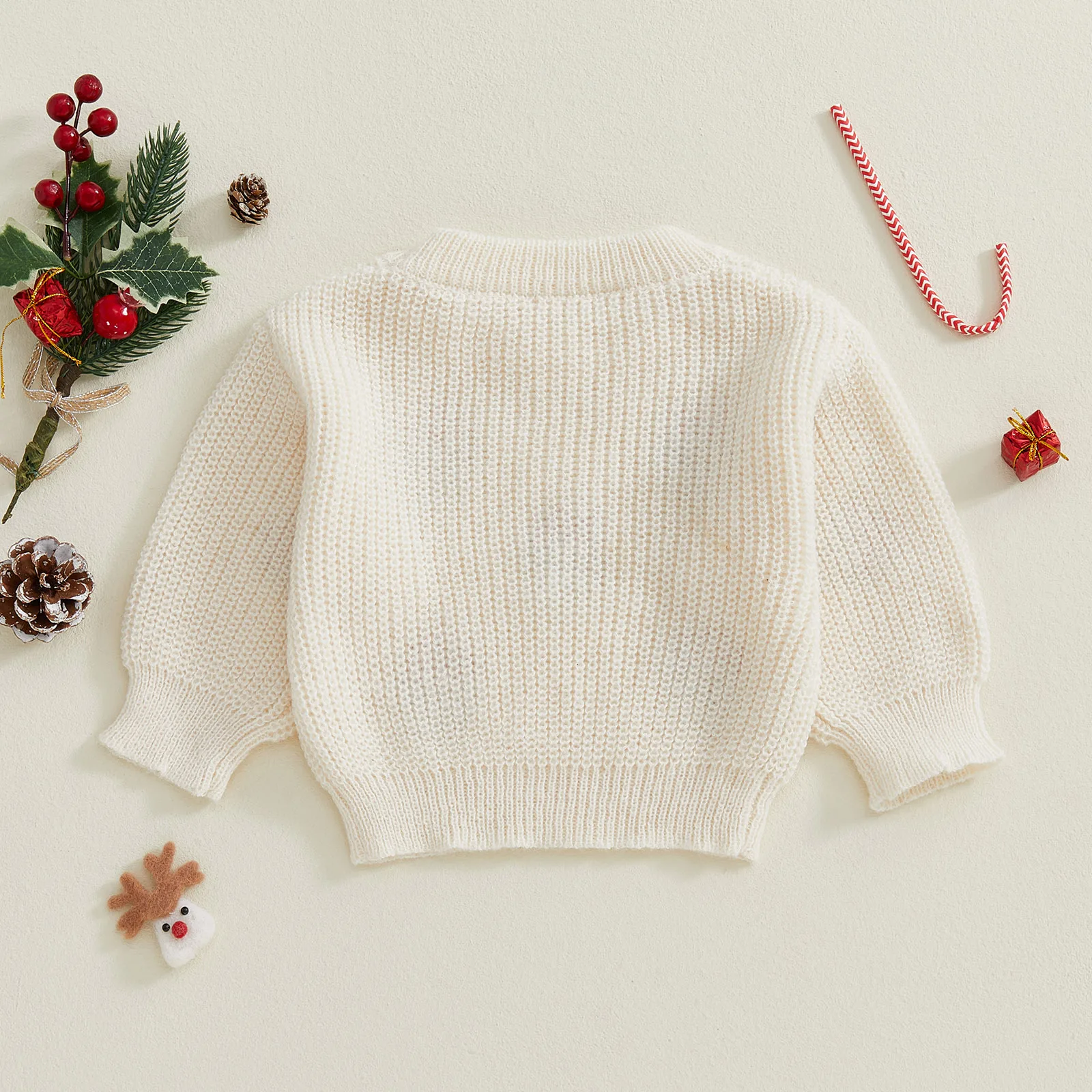 Maglione natalizio per bambino da bambino Top pullover lavorato a maglia a maniche lunghe a costine ricamato con Babbo Natale per l’autunno inverno