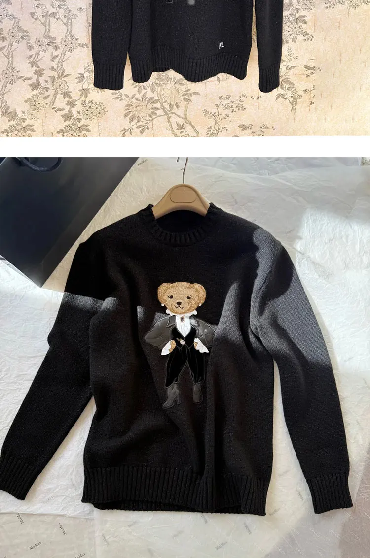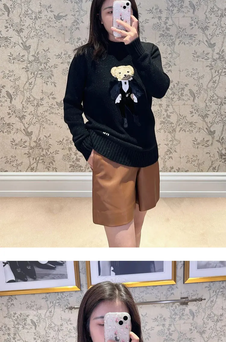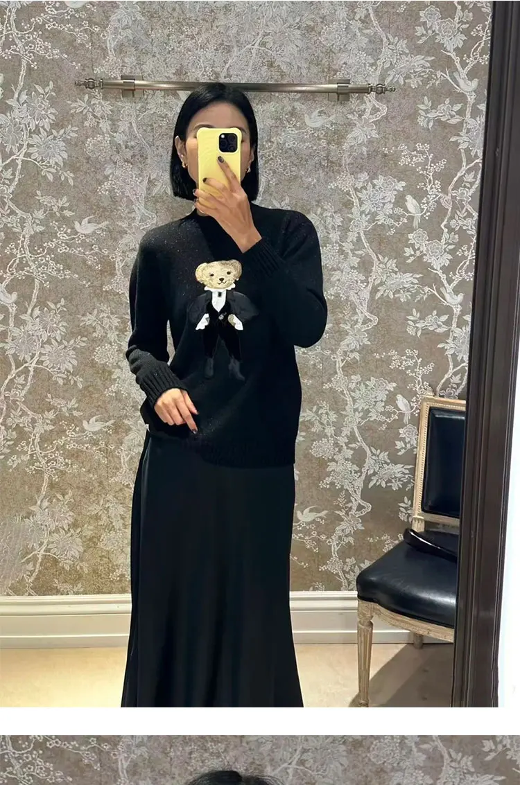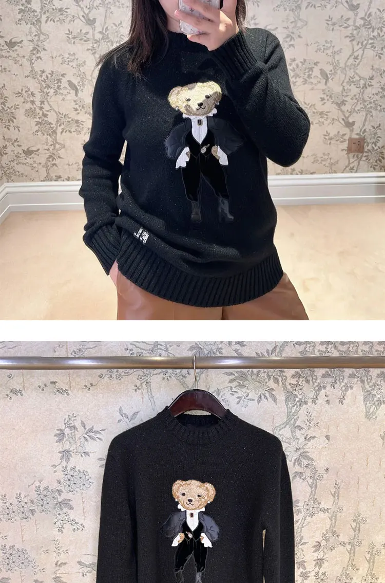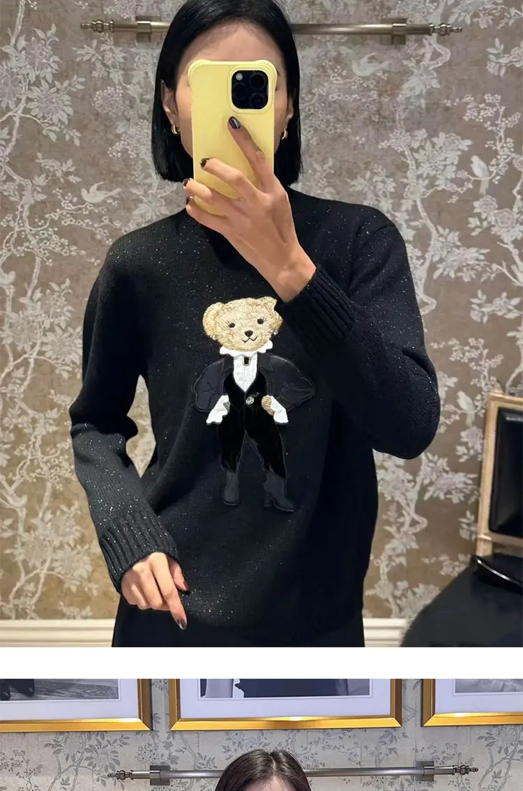 Maglione orso metallizzato per le vacanze del 2025 Pullover lavorato a maglia in cashmere Autunno Inverno Manica lunga Maglieria da donna Top Coat Abiti dalla vestibilità rilassata