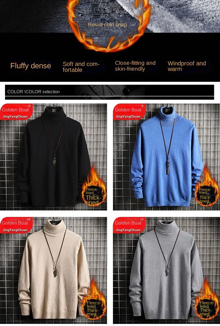 Maglione pullover in peluche in pile autunno inverno casual da uomo addensato con colletto alto abbigliamento termico allentato maglione lavorato a maglia da uomo 1Maglione pullover in peluche in pile autunno inverno casual da uomo addensato con colletto alto abbigliamento termico allentato maglione lavorato a maglia da uomo