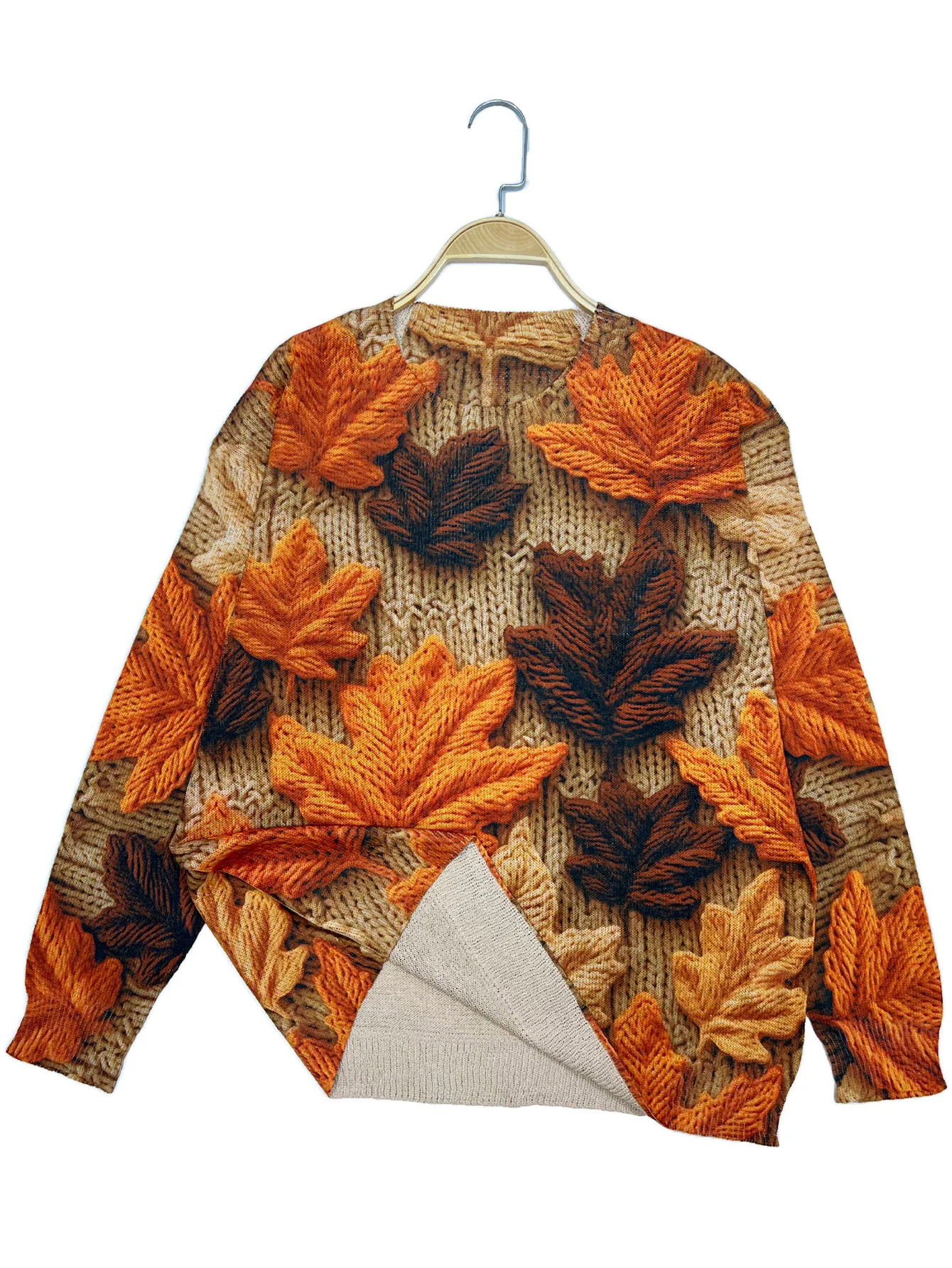 Maglione sottile con stampa a foglia maglione casual girocollo a maniche lunghe primavera e autunno abbigliamento donna