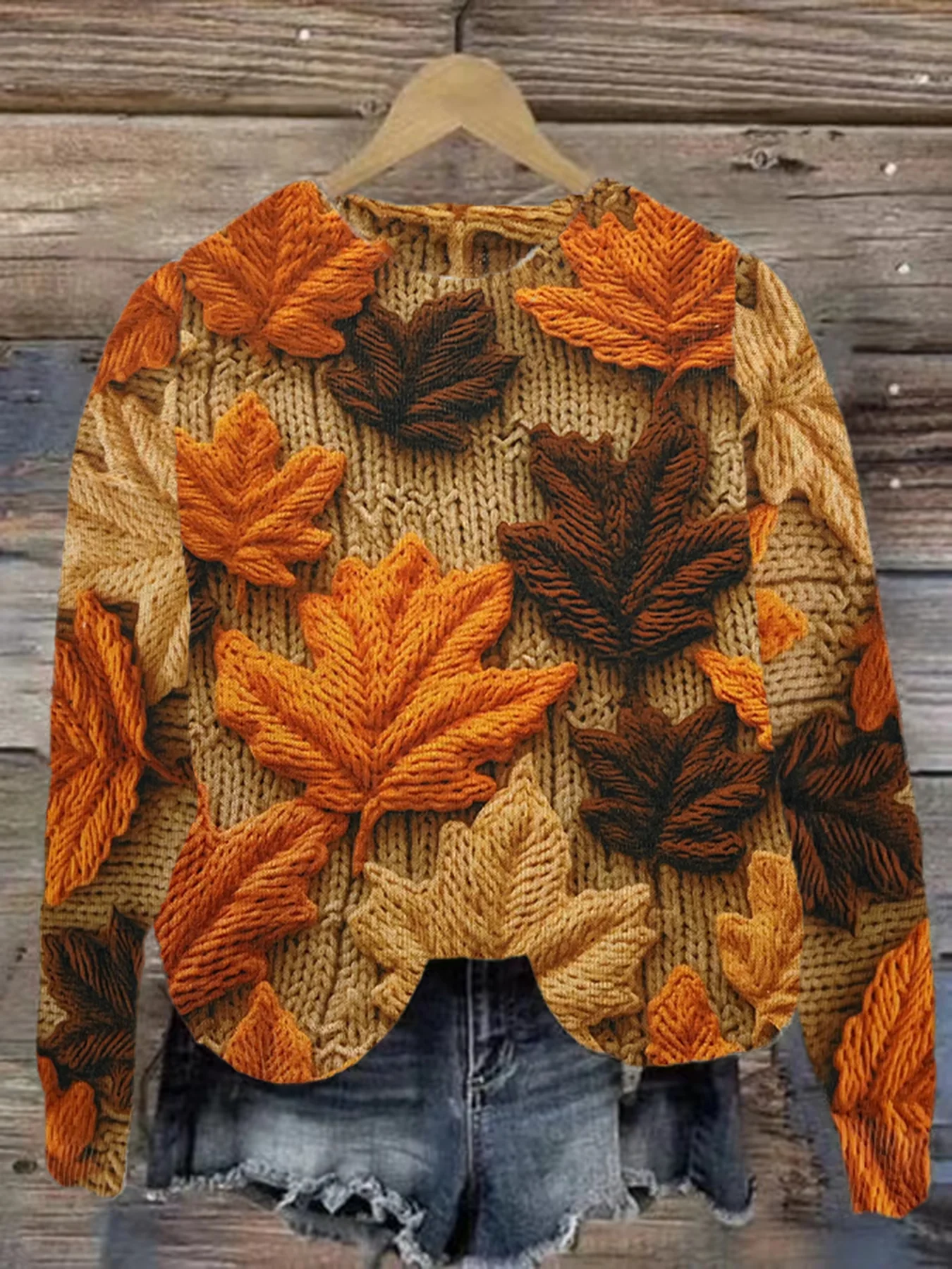 Maglione sottile con stampa a foglia maglione casual girocollo a maniche lunghe primavera e autunno abbigliamento donna