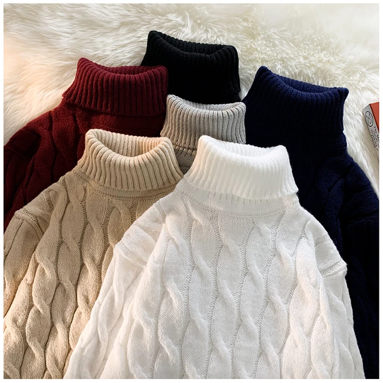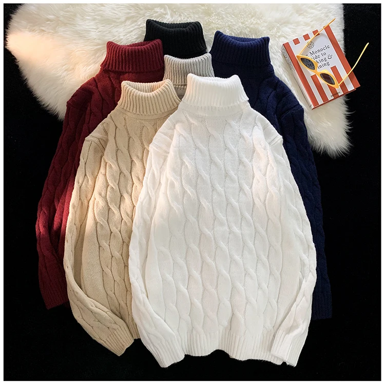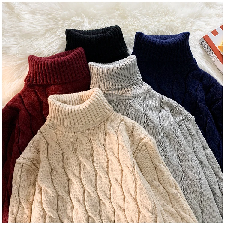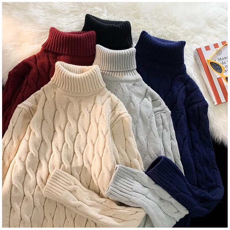 Maglione spesso da uomo autunno inverno colletto dolcevita tinta unita spesso manica lunga maglione lavorato a maglia classico di base caldo 1Maglione spesso da uomo autunno inverno colletto dolcevita tinta unita spesso manica lunga maglione lavorato a maglia classico di base caldo