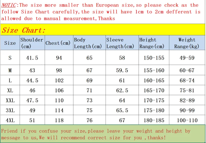 Per garantire una buona esperienza per lo shopping per te, per favore prendi un minuto per informarsi nel servizio clienti dell’altezza e del peso, nonché se hai una pancia. Il nostro negozio analizzare e consiglia le dimensioni più adatte per te! Una volta il pagamento è elaborato con successo tramite il sistema entro 24 ore, organizzareemo immediatamente lo spedizione!