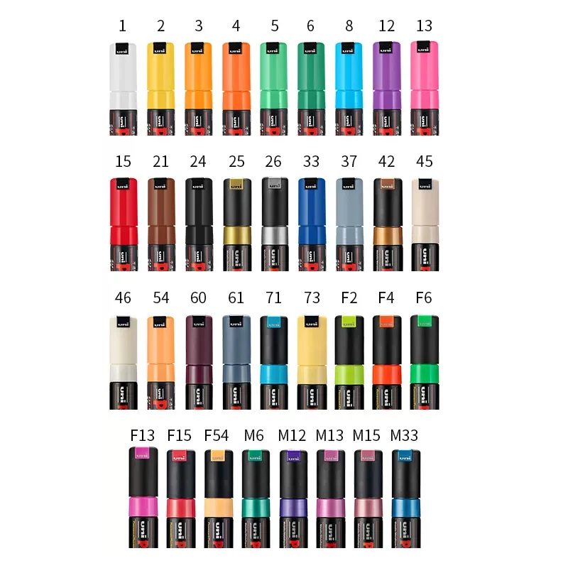 Marcatore Posca 8K in 35 colori, penne Posca per materiale artistico, materiale scolastico, arte della roccia, vernice in tessuto, pennarelli in tessuto, penna a vernice,