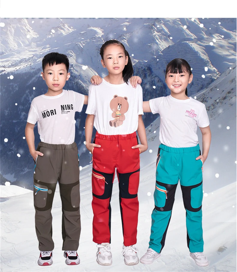 7 recensioni per Marchio di moda Impermeabile Ragazzo Ragazza Pantaloni per bambini Pantaloni caldi Leggings da arrampicata sportiva Bambini Patchwork Soft Shell Abiti autunno