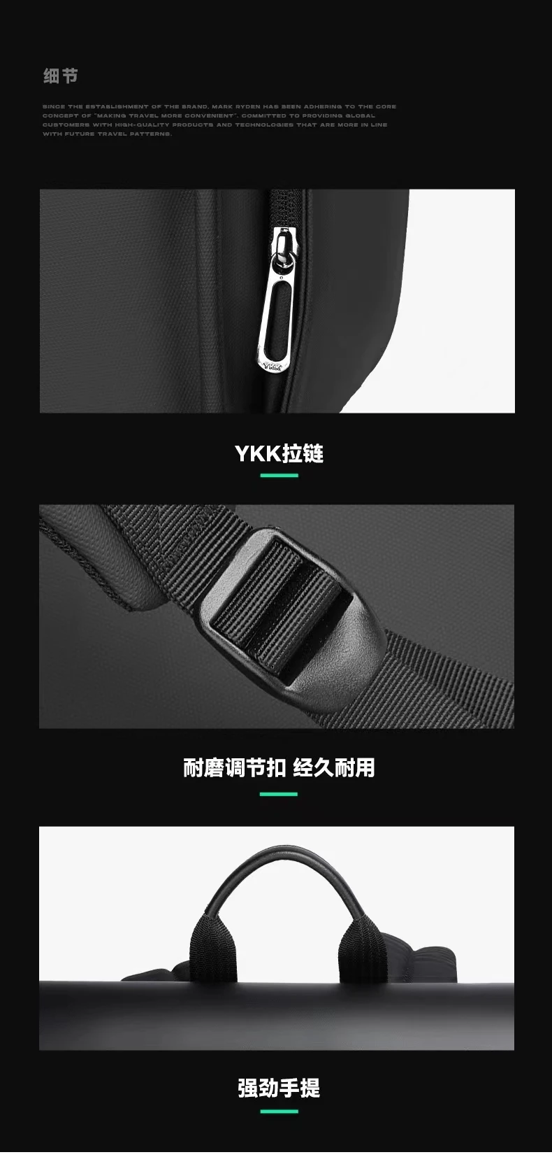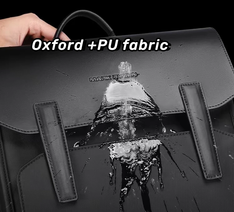Mark Ryden Oxford + PU Zaino da lavoro da uomo in tessuto in pelle Borsa da studente a vento nordico per computer leggero per il tempo libero