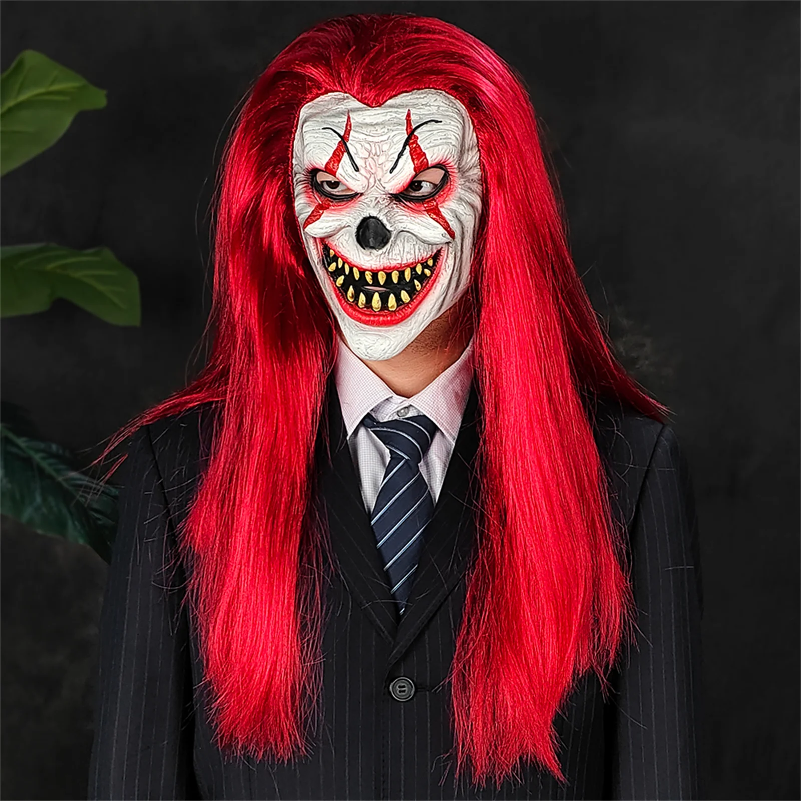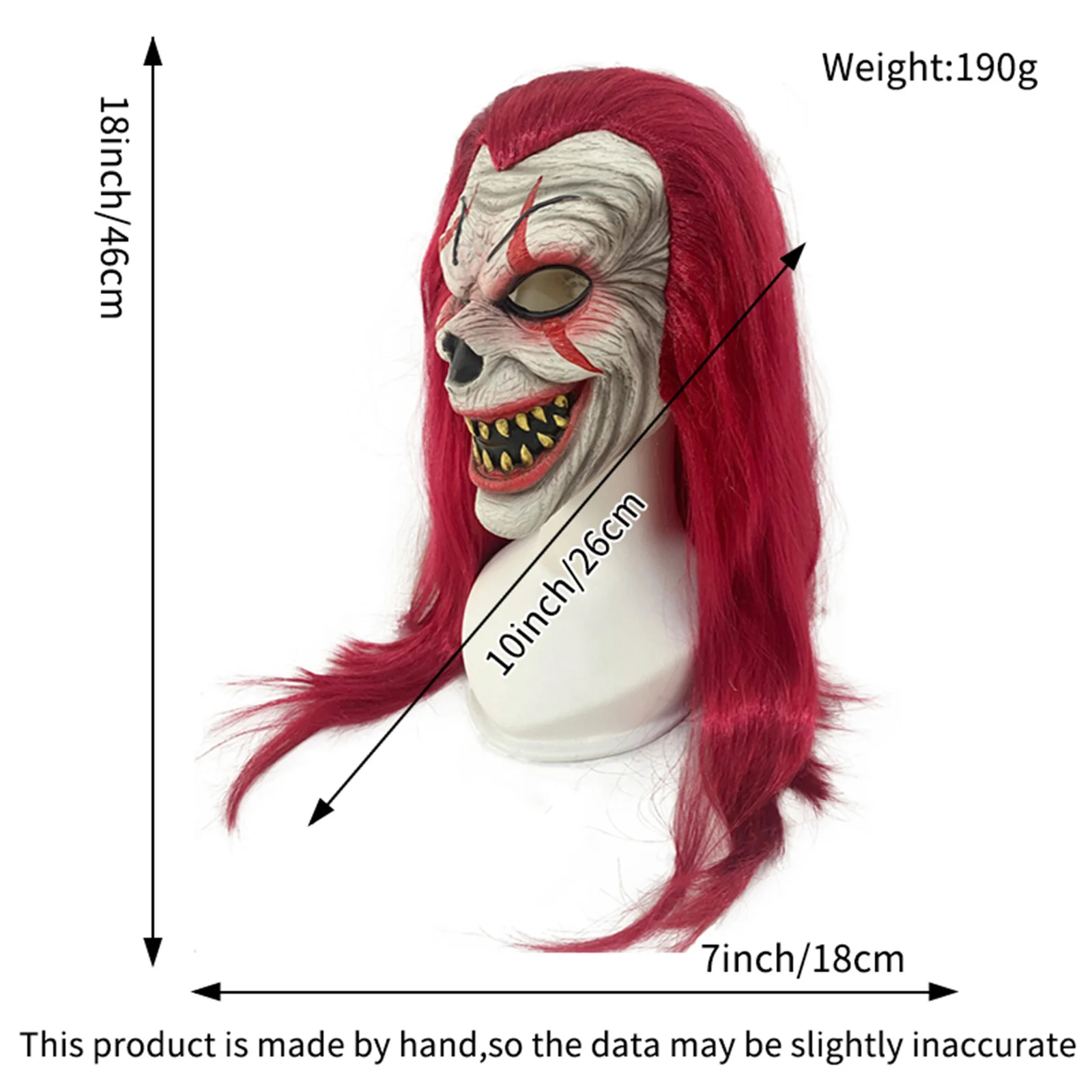 Maschera da clown dai capelli rossi dipinta a mano di grado da collezione – Accessorio per scherzi di Halloween in lattice naturale e maschera per giochi di ruolo di carnevale | Alto Detai