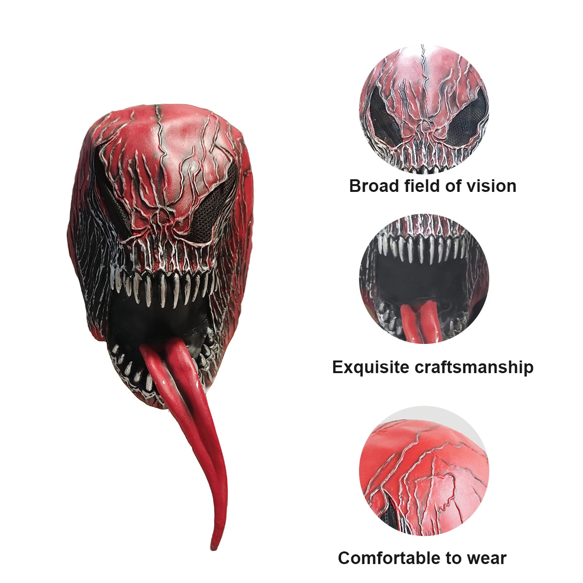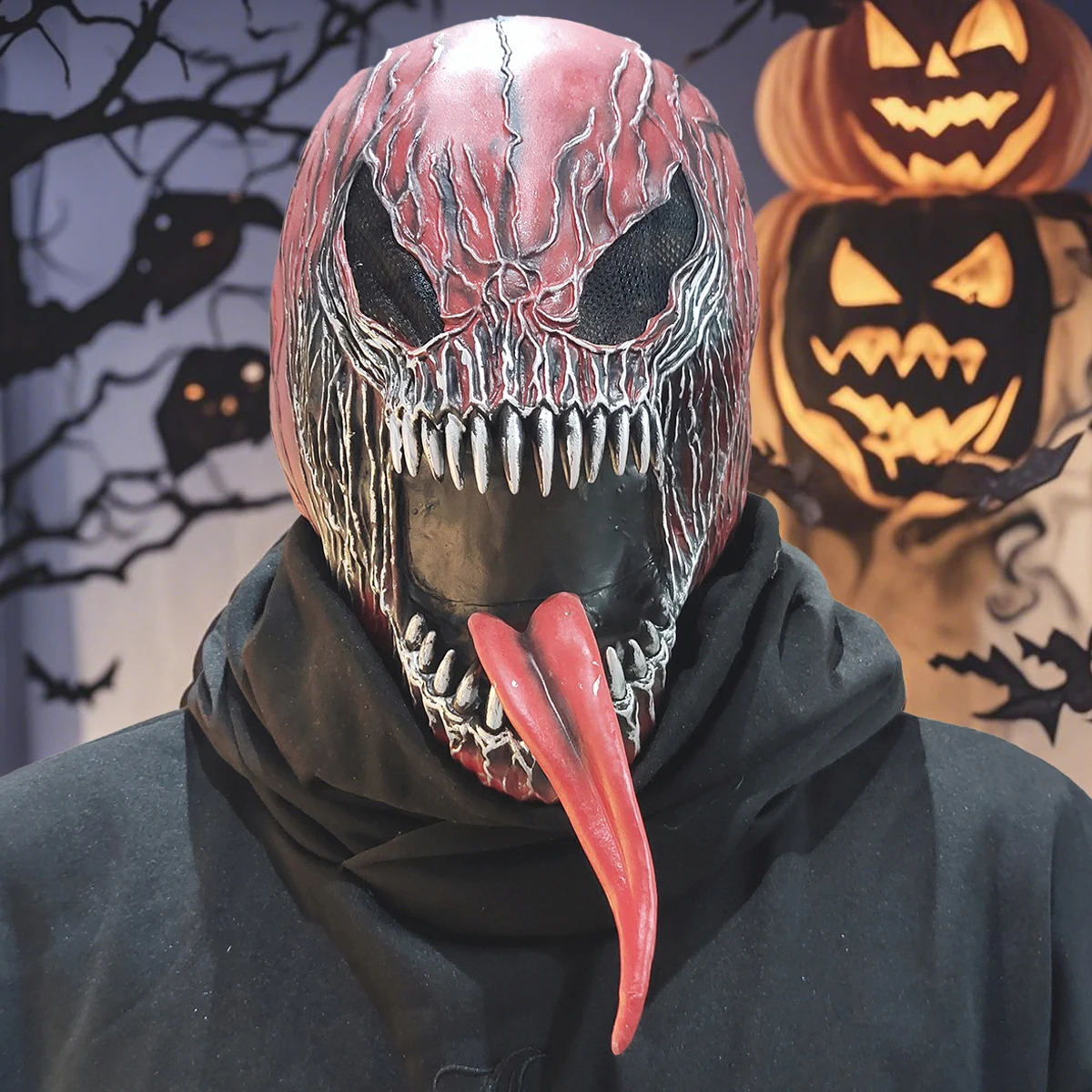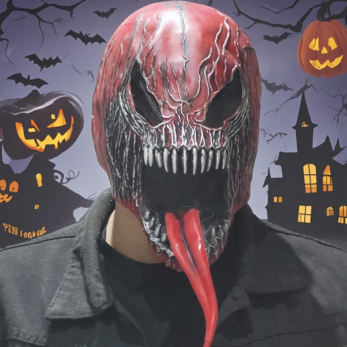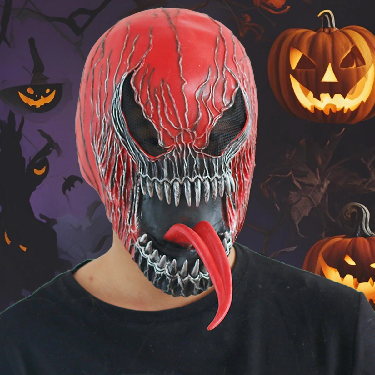 Maschera in lattice con veneno insanguinato horror di Halloween, oggetti di scena per costumi cosplay di ruolo di film, maschera per la testa piena di horror per feste, COSPLAY per feste da ballo