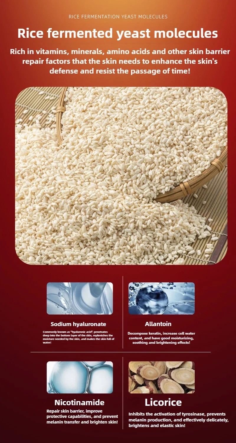 | Cosmetic efficacy | Brightens skin tone, moisturizes, and tightens |