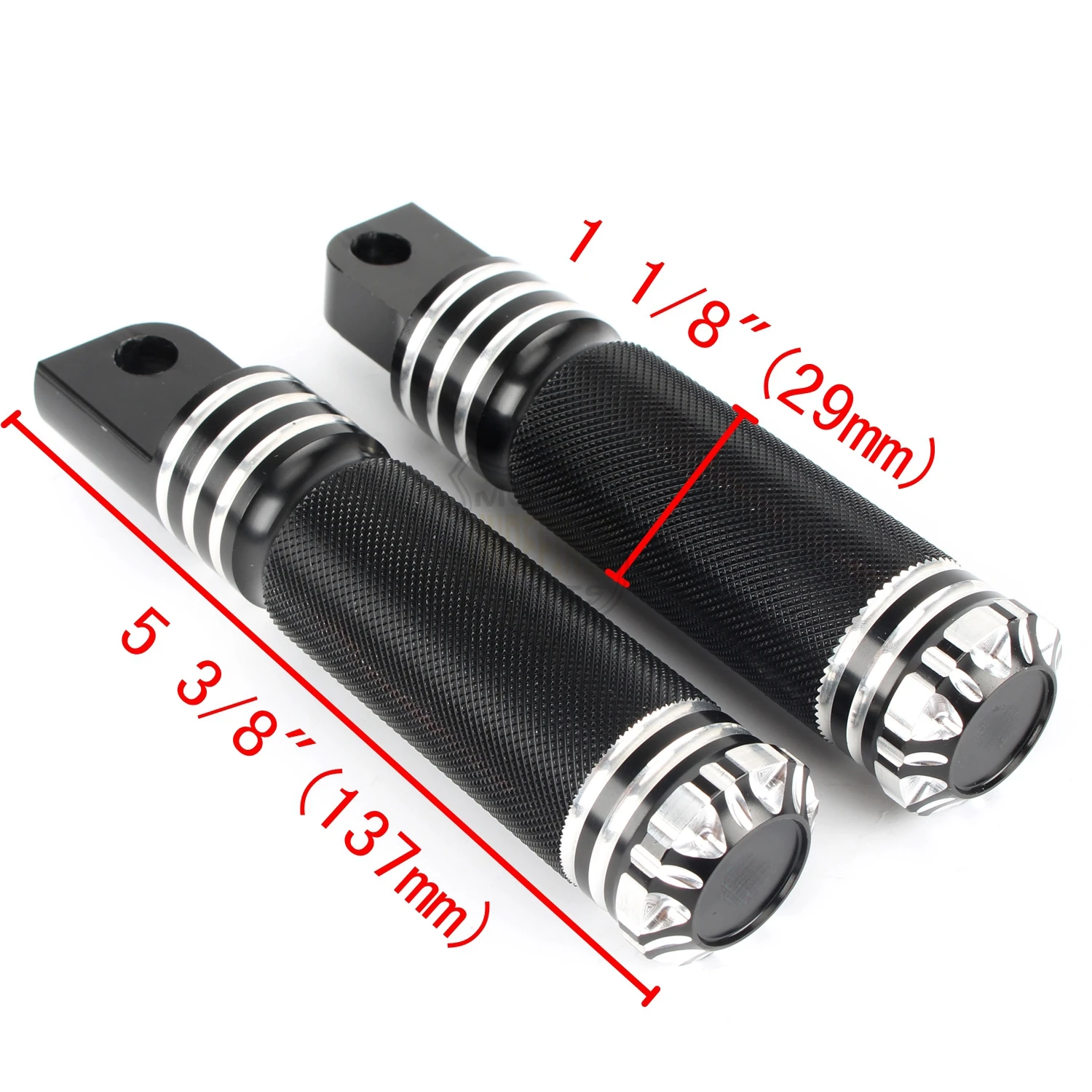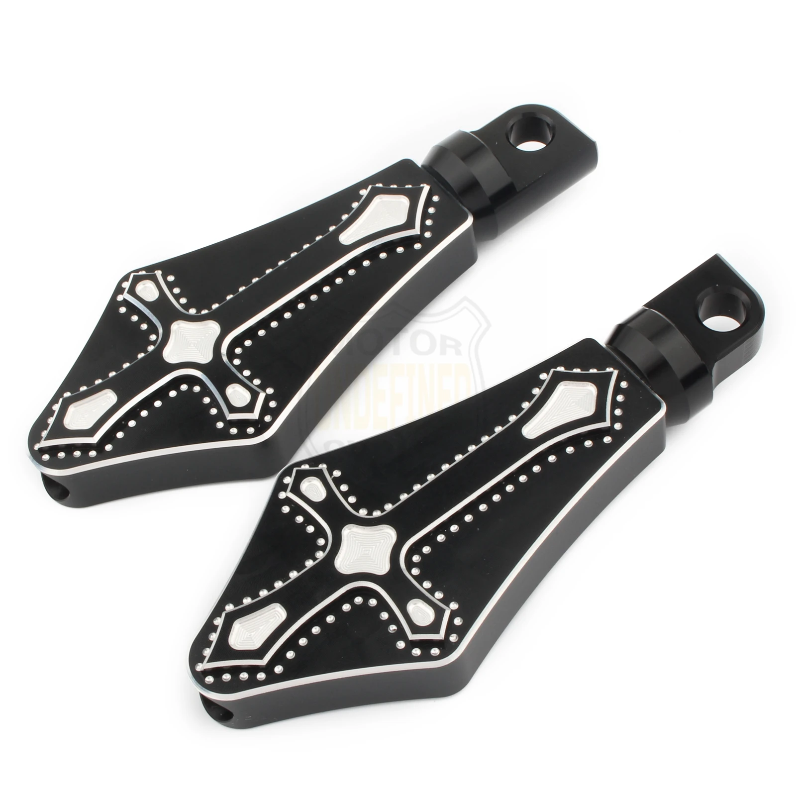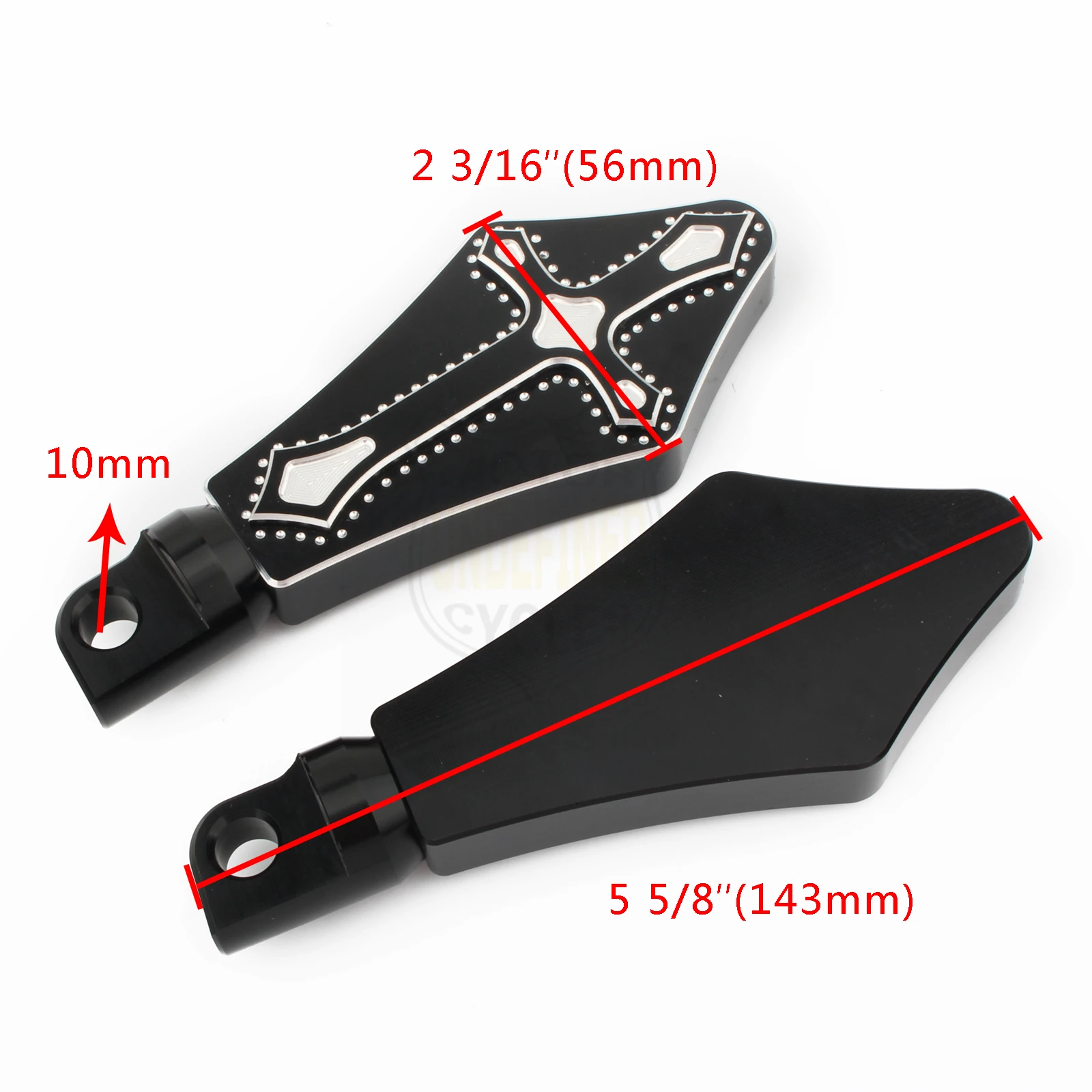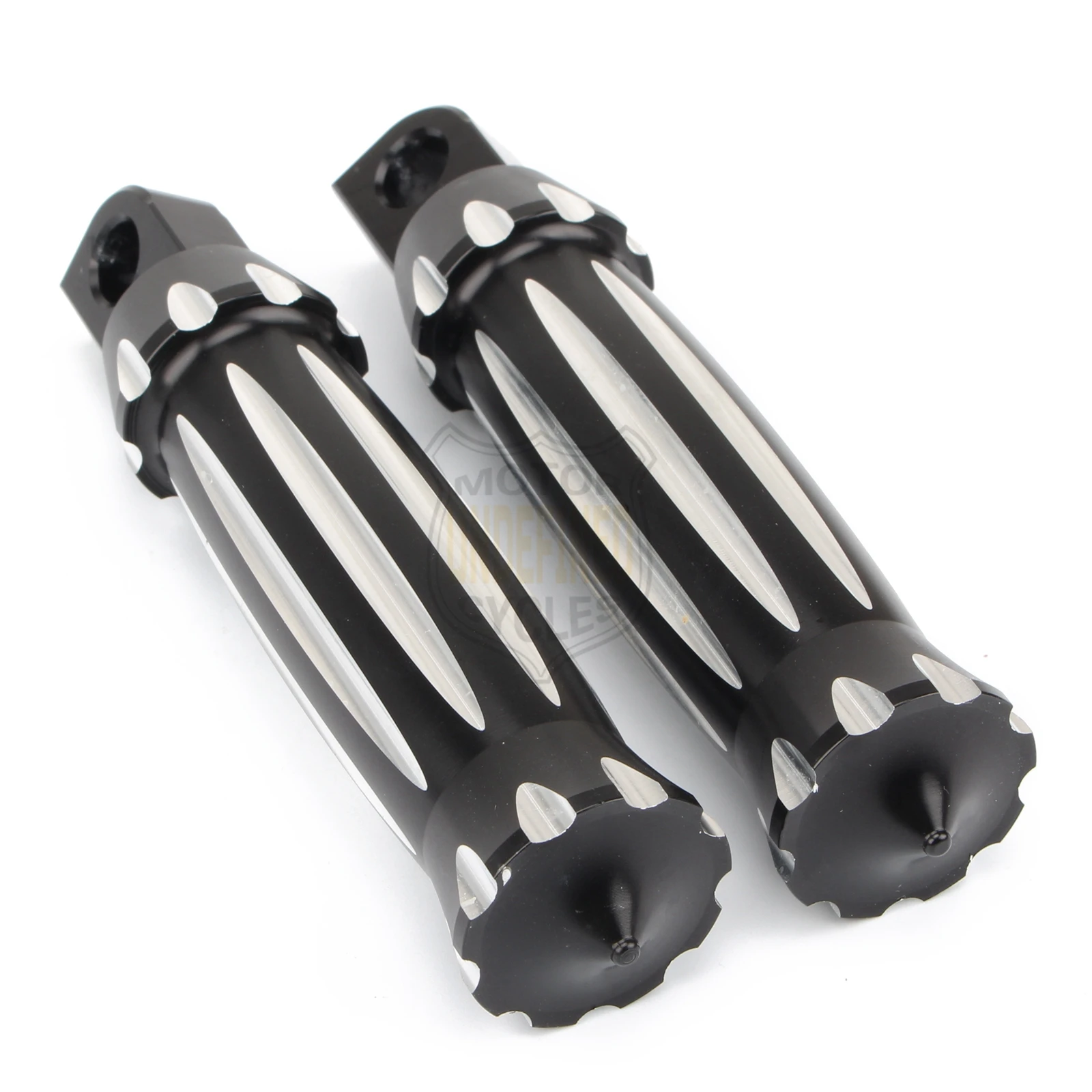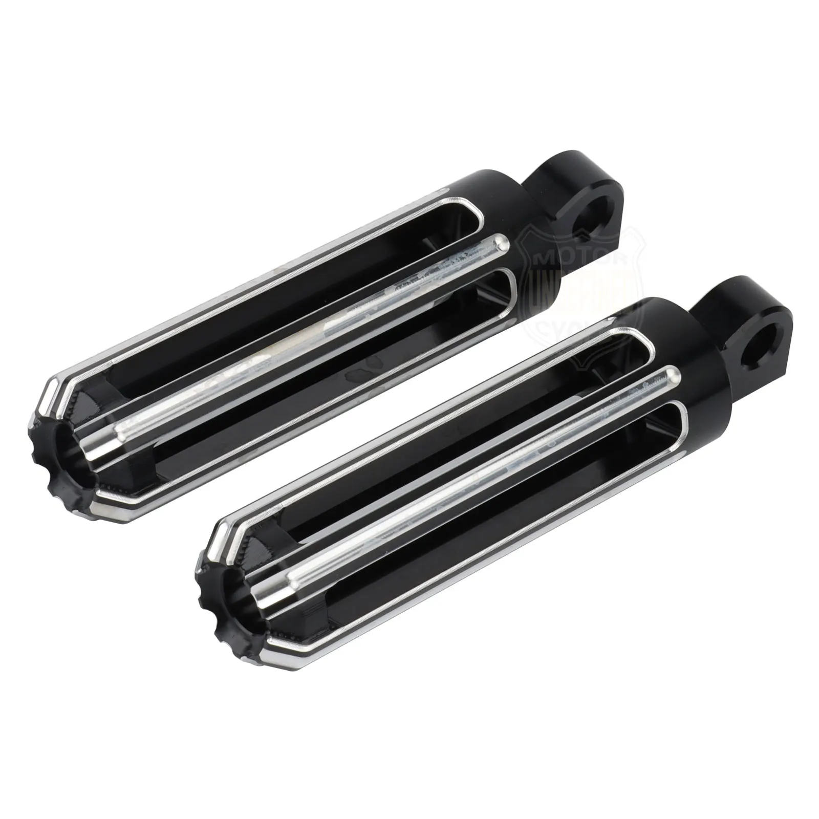 Descrizione:- Condizione: 100% nuovo di zecca- Colore: nero/cromato- Materiale: alluminio- Confezione: 2 pedane (sinistra e destra)Montaggio:- Nota: il modello Sportster non può essere installato sulla parte anteriore, può solo essere installato sulla parte posteriore.- Per il modello Harley Touring Richiederà l’uso dei supporti per pedana accessori OEM.(Street Glide, Electra Glide, Road Glide)- Adatto ai modelli con supporti poggiapiedi stile attacco maschio H-D (eccetto la posizione del pilota su XG dal ’15 in poi, XL883L dal ’07- in poi, XL883N dal ’07 in poi, XL1200N, XL1200T, XL1200V e XL1200X, FX1200C dal ’11 in poi, XL1200CX dal ’16 in poi, XL1200CA dal ’17 in poi, XL1200NS e XL1200C dal ’18 in poi, XRS e XL1200X- Adatto a tutti i modelli Harley con supporto per poggiapiedi per conducente, passeggero o come poggiapiedi Highway.(NON adatto per la posizione del pilota dei modelli Harley con pedane Wear Peg (con capezzolo) come 48 Sporty, Sporty 72 ecc.).Caratteristica:- Dona alla tua bici un aspetto aggressivo. Rende la tua bici fantastica mentre sei in mostra o in viaggio.- L’ampia superficie mantiene lo stivale in posizione, garantisce una guida comoda e un posizionamento del piede.- Non preoccuparti di trascinare le pedane a terra in caso di bruschi curve.- Alluminio fresato e CNC per estrema resistenza e longevità.- Resiste ai rigori della guida e alla prova del tempo e agli elementi a cui sono esposti le nostre biciclette.