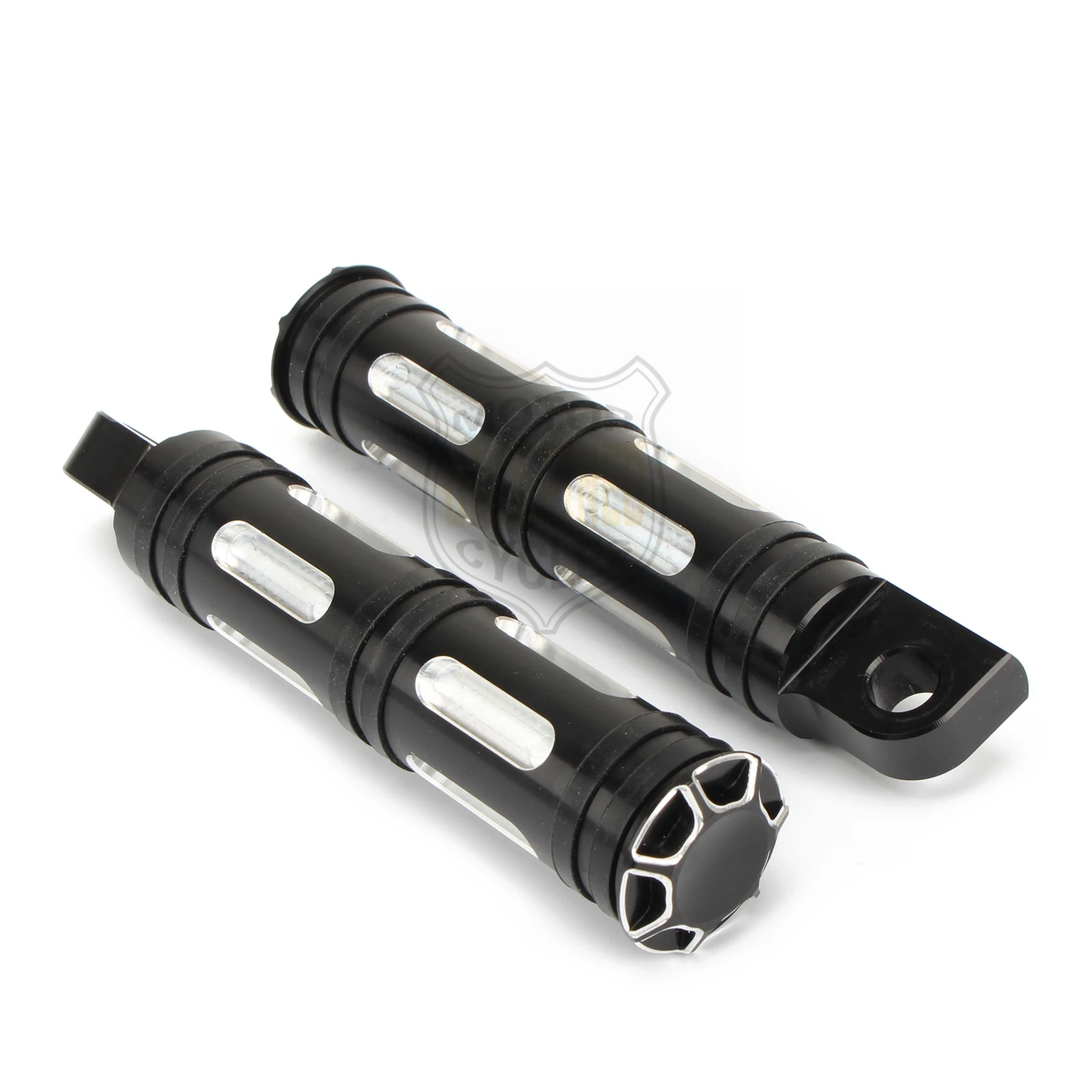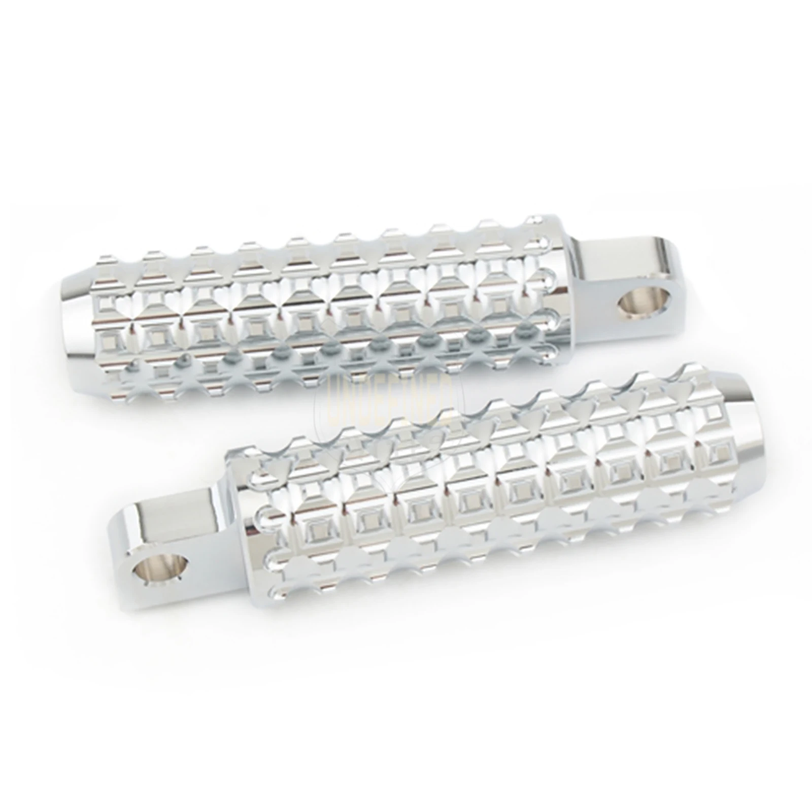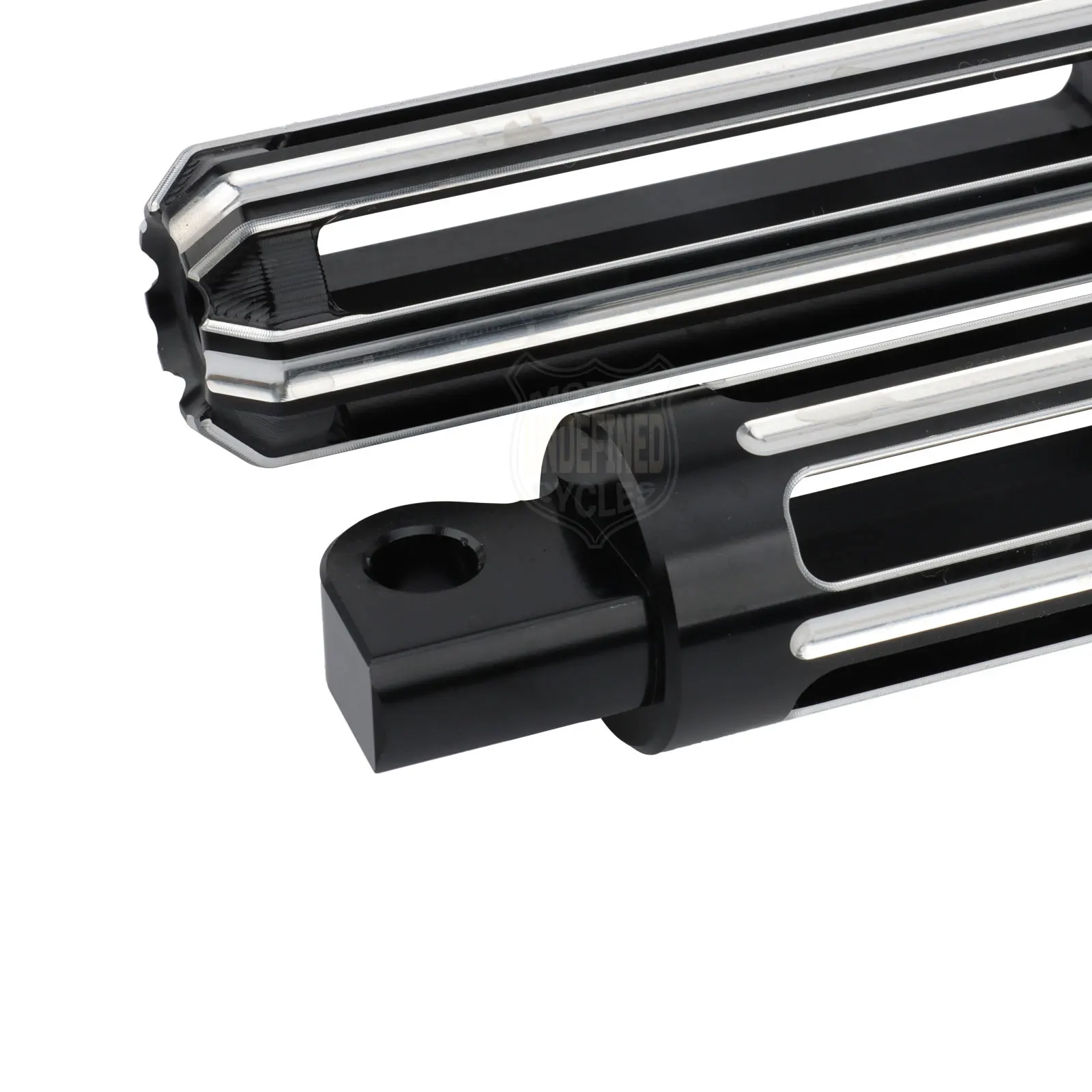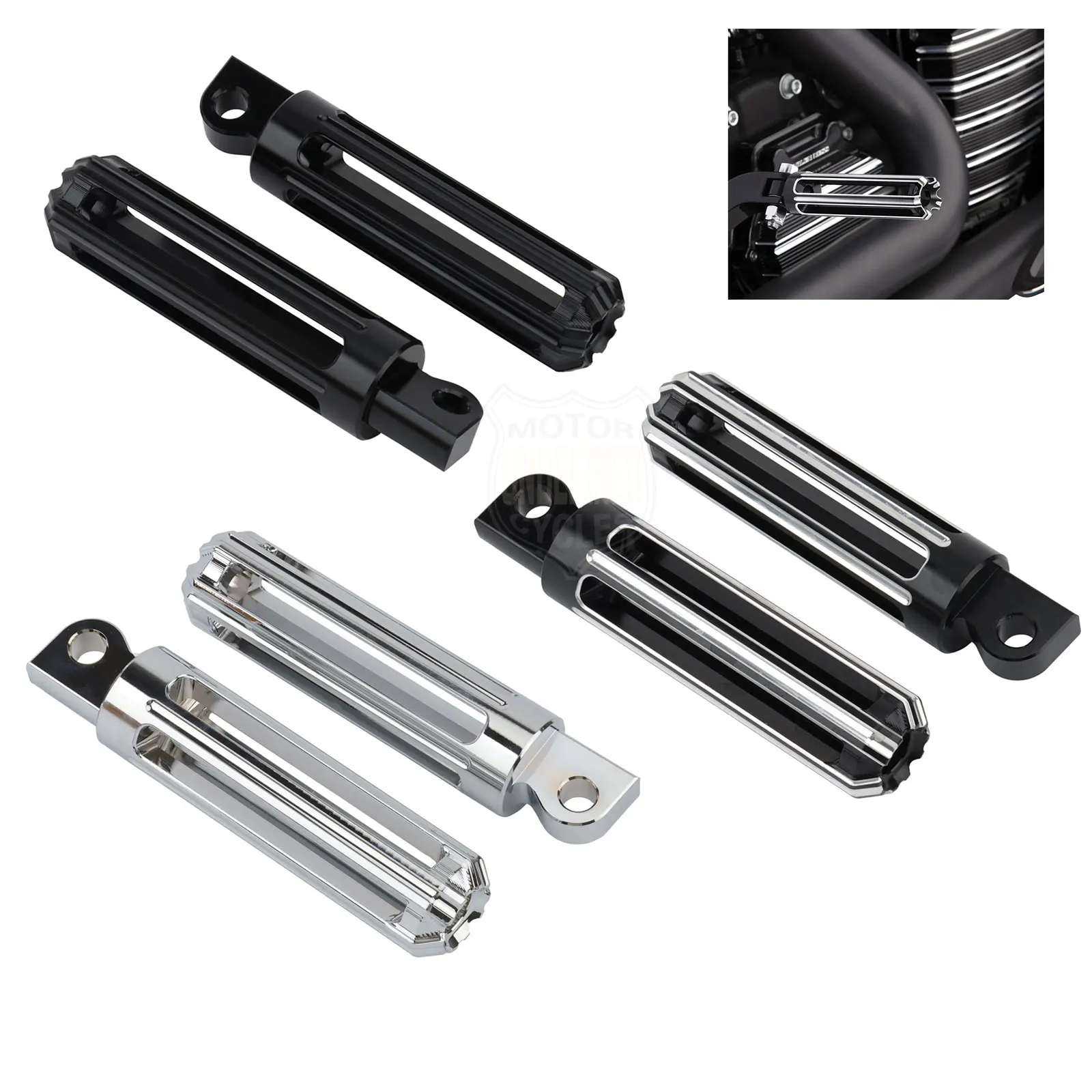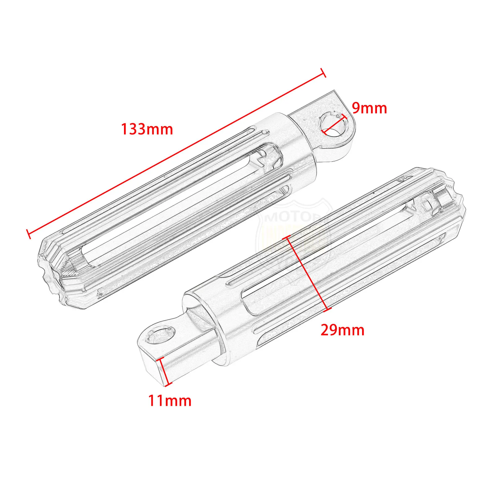 Descrizione:- Condizione: 100% nuovo di zecca- Colore: nero/cromato- Materiale: alluminio- Confezione: 2 pedane (sinistra e destra)Montaggio:- Nota: il modello Sportster non può essere installato sulla parte anteriore, può solo essere installato sulla parte posteriore.- Per il modello Harley Touring Richiederà l’uso dei supporti per pedana accessori OEM.(Street Glide, Electra Glide, Road Glide)- Adatto ai modelli con supporti poggiapiedi stile attacco maschio H-D (eccetto la posizione del pilota su XG dal ’15 in poi, XL883L dal ’07- in poi, XL883N dal ’07 in poi, XL1200N, XL1200T, XL1200V e XL1200X, FX1200C dal ’11 in poi, XL1200CX dal ’16 in poi, XL1200CA dal ’17 in poi, XL1200NS e XL1200C dal ’18 in poi, XRS e XL1200X- Adatto a tutti i modelli Harley con supporto per poggiapiedi per conducente, passeggero o come poggiapiedi Highway.(NON adatto per la posizione del pilota dei modelli Harley con pedane Wear Peg (con capezzolo) come 48 Sporty, Sporty 72 ecc.).Caratteristica:- Dona alla tua bici un aspetto aggressivo. Rende la tua bici fantastica mentre sei in mostra o in viaggio.- L’ampia superficie mantiene lo stivale in posizione, garantisce una guida comoda e un posizionamento del piede.- Non preoccuparti di trascinare le pedane a terra in caso di bruschi curve.- Alluminio fresato e CNC per estrema resistenza e longevità.- Resiste ai rigori della guida e alla prova del tempo e agli elementi a cui sono esposti le nostre biciclette.