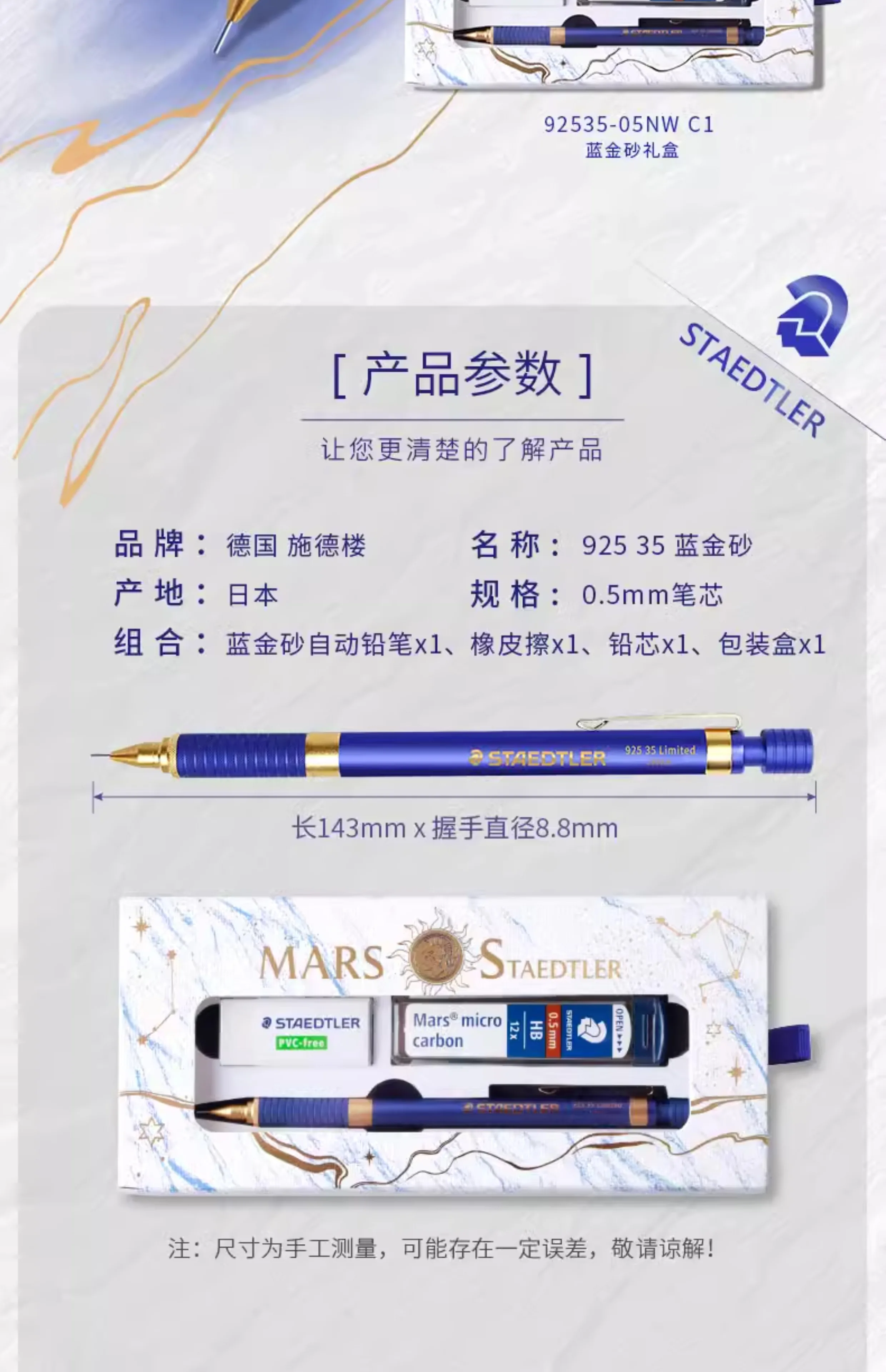 Matita meccanica STAEDTLER MARS in edizione limitata 0,5 mm HB placcatura in oro confezione regalo disegno schizzi scrittura liscia piccolo regalo
