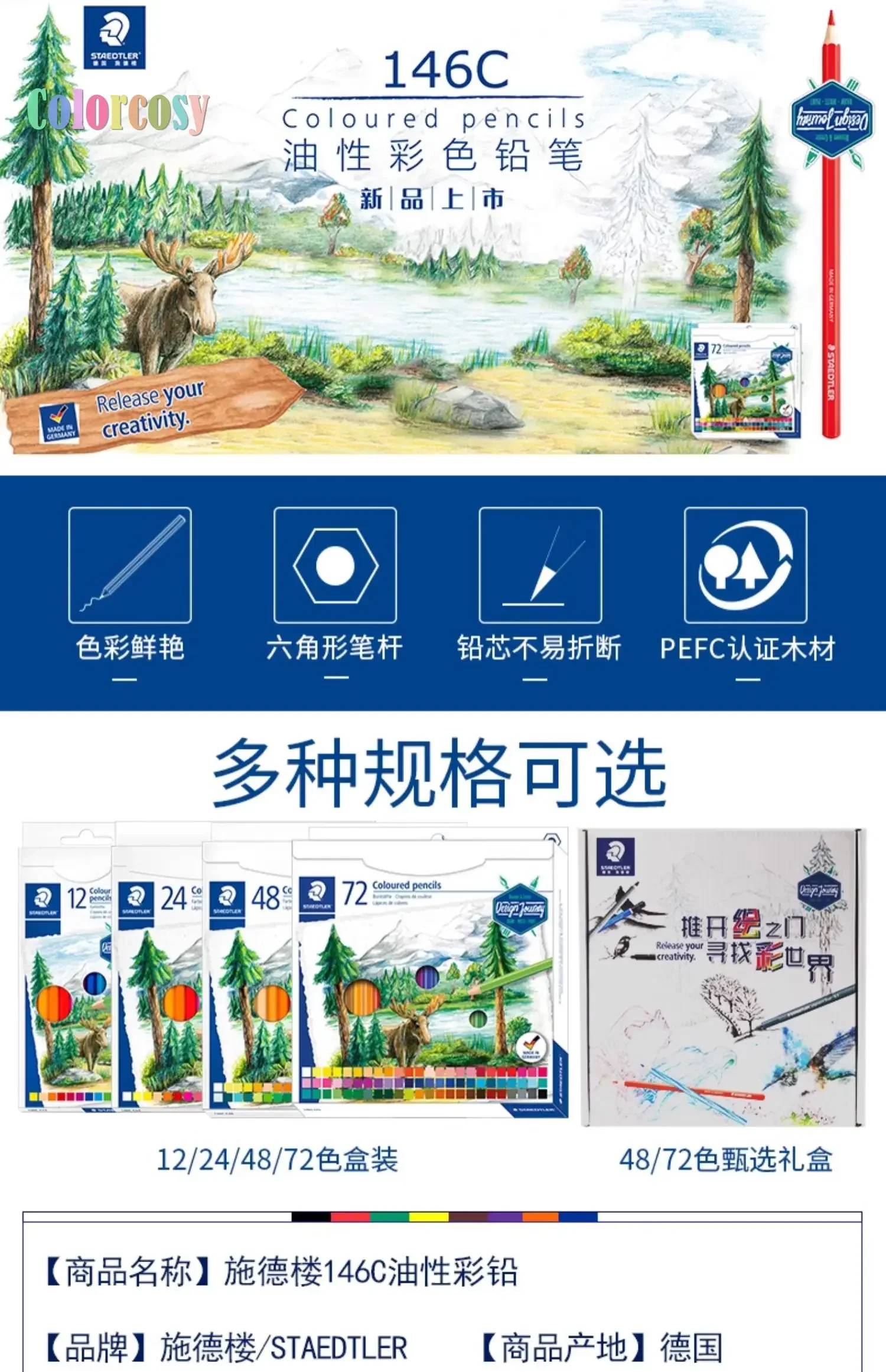 Matite colorate STAEDTLER, set artistico Premium, 12/24/48/72 colori, nucleo morbido produce linee intense e vibranti e ombreggiature