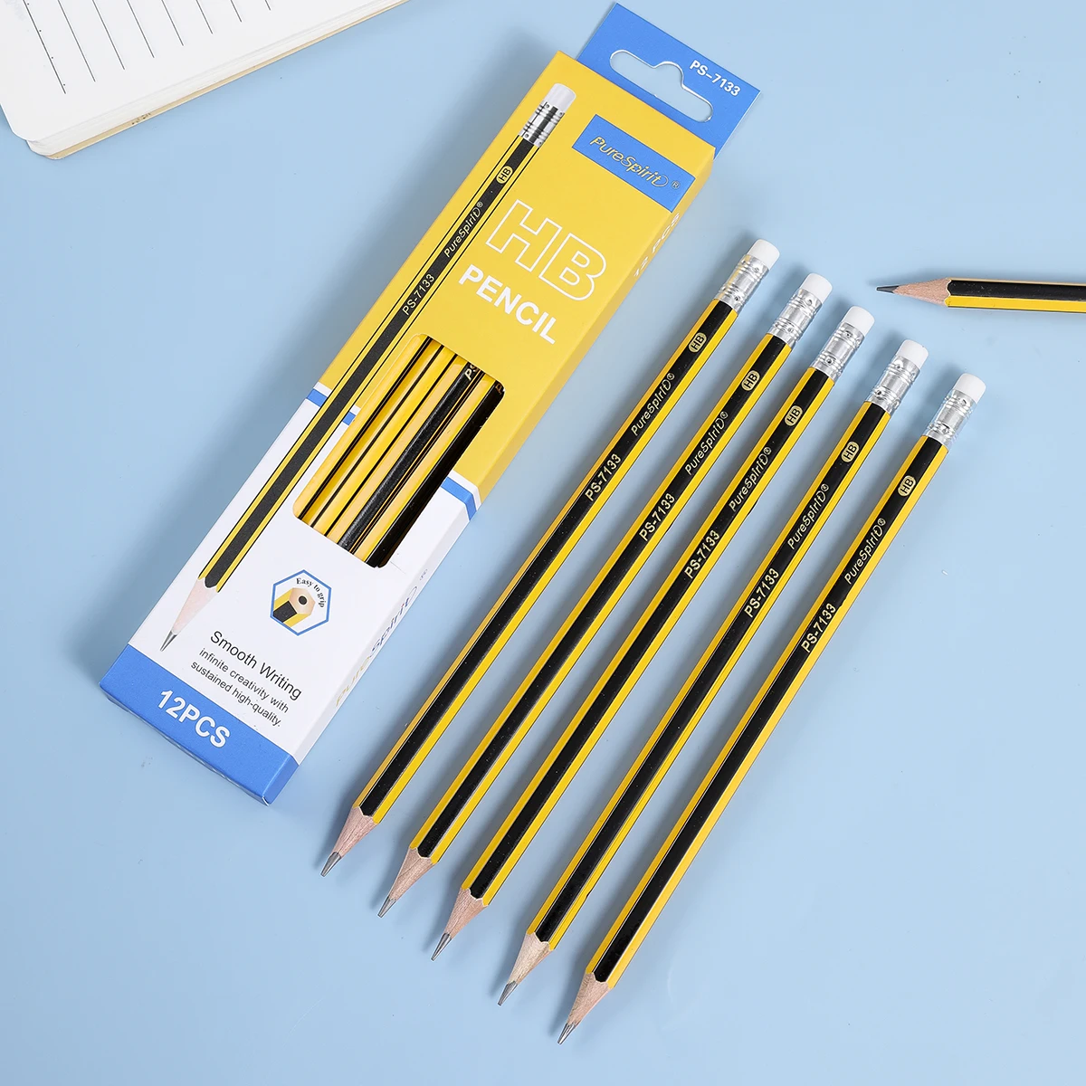 Matite in legno da 12 pezzi con gomma Matite in grafite HB pre-affilate per studenti, adulti, scuola, ufficio