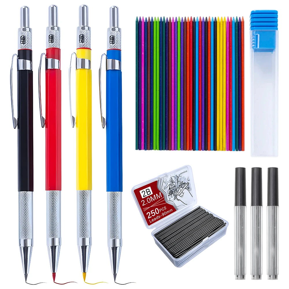 Matite meccaniche da 2 mm Piombo di grafite colorato Disegno Pittura Schizzo Arte Scrivi Cancelleria estetica Ricarica automatica della penna a matita