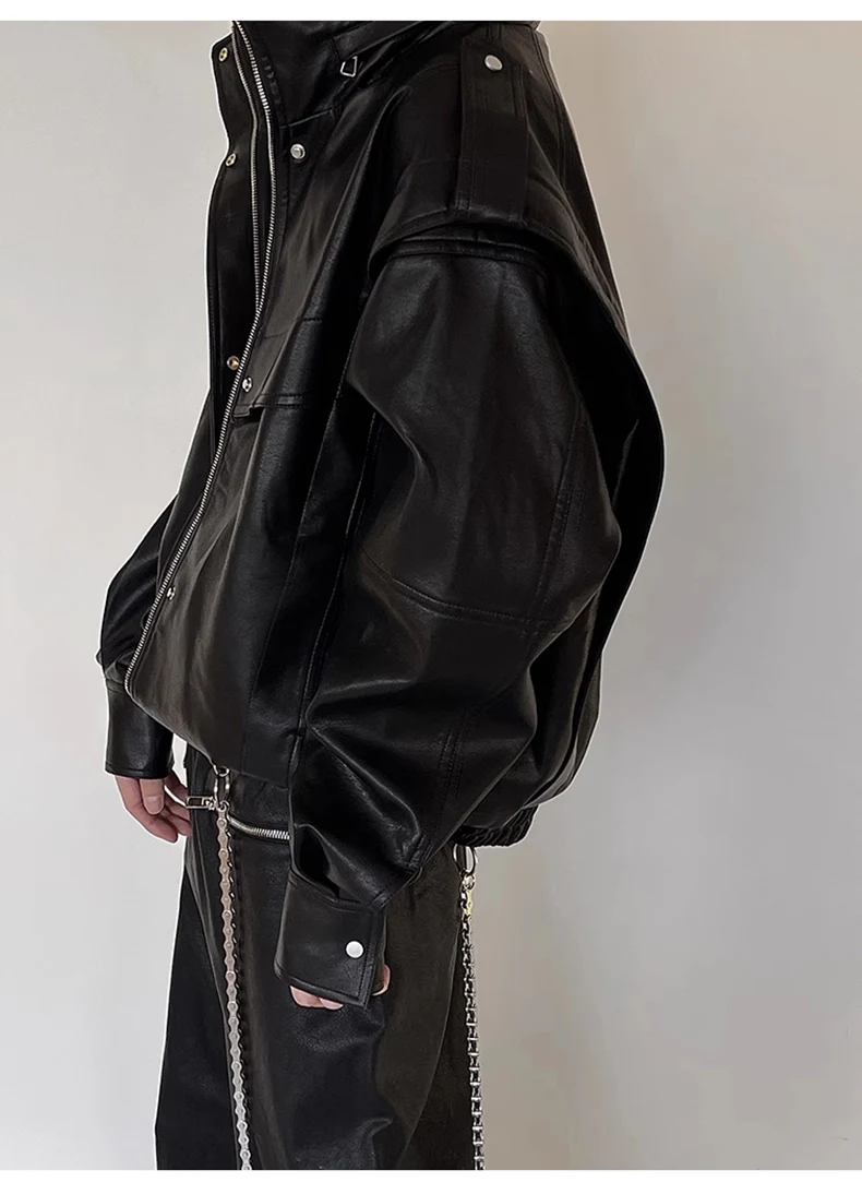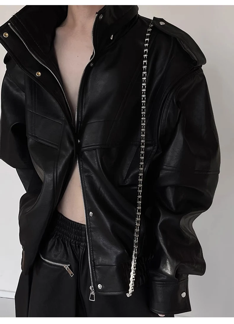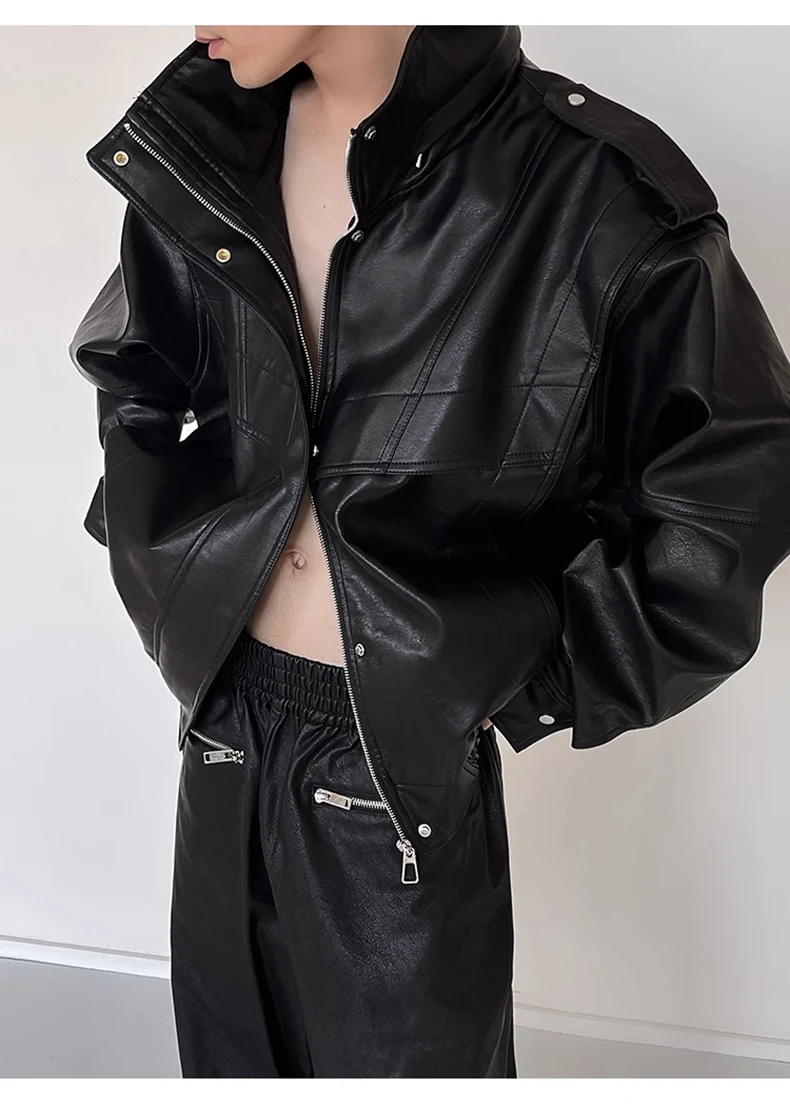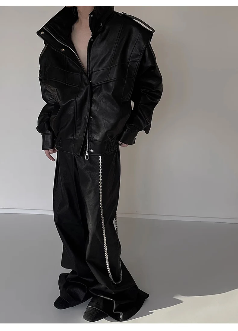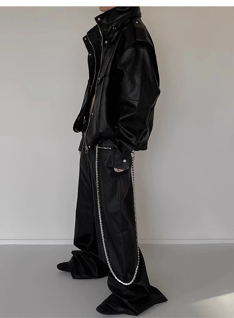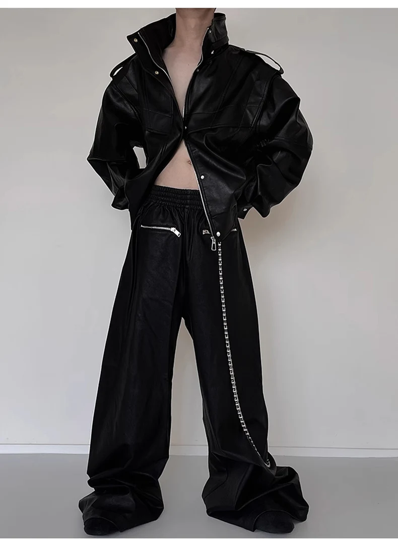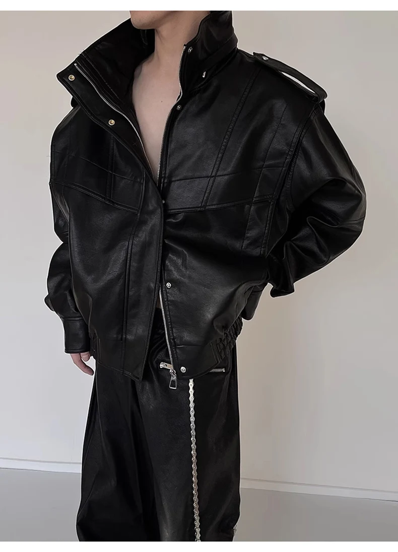Mauroicardi autunno inverno oversize Cool impermeabile antivento nero Pu giacca in pelle da uomo Zip Up abiti firmati di lusso 2023 1Mauroicardi autunno inverno oversize Cool impermeabile antivento nero Pu giacca in pelle da uomo Zip Up abiti firmati di lusso 2023