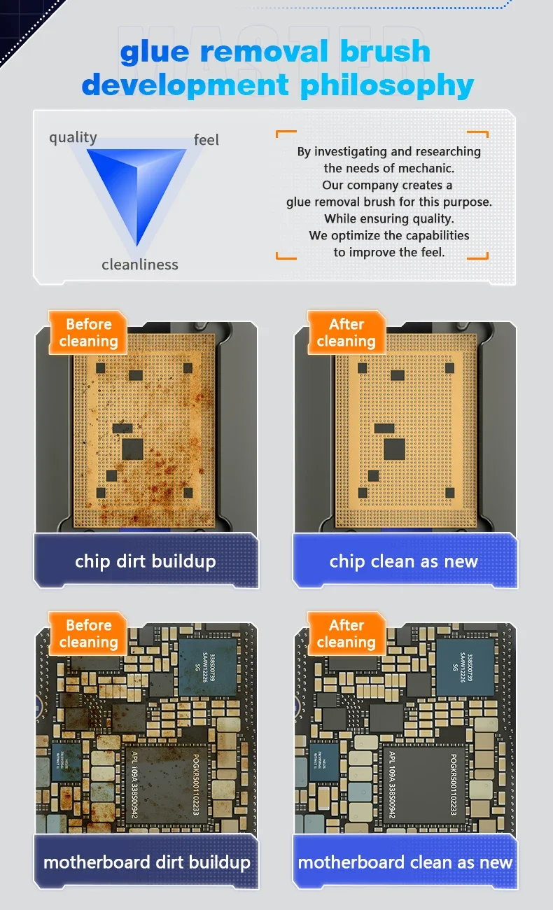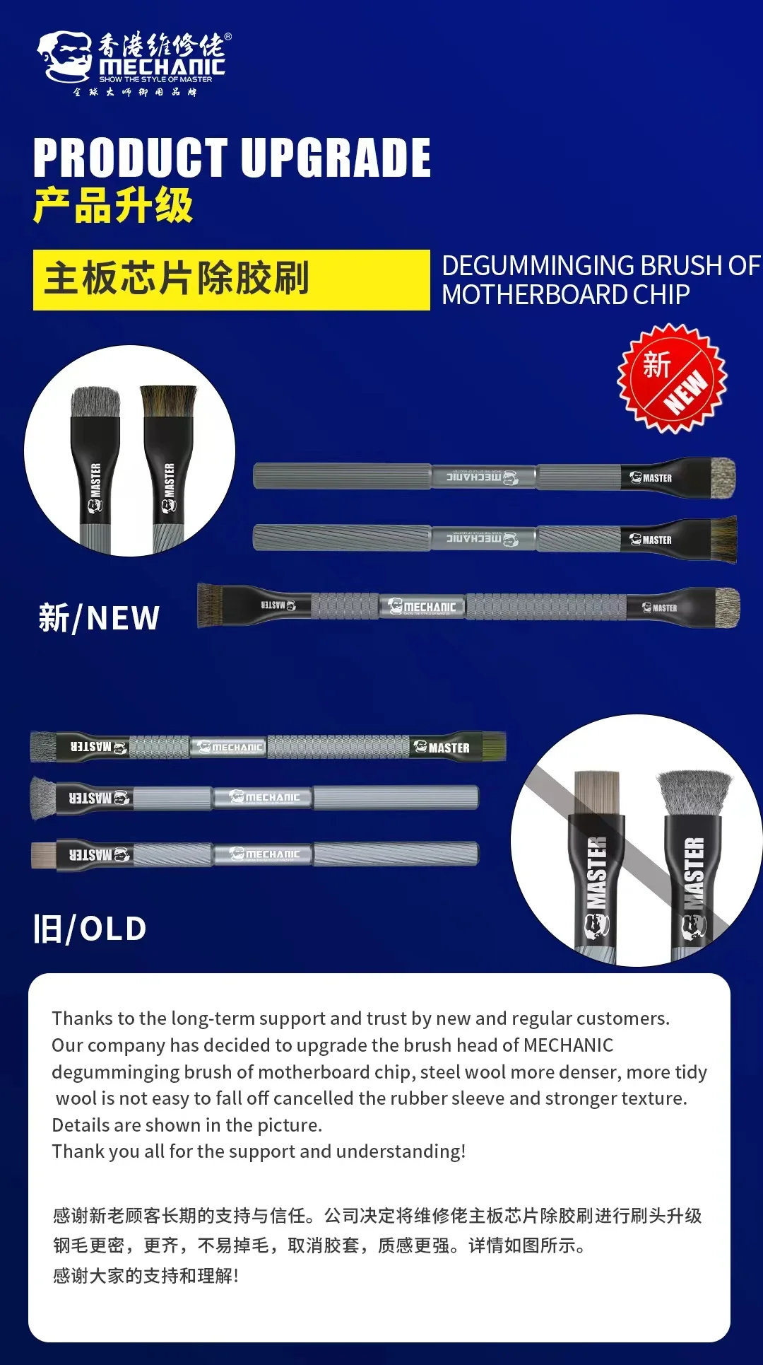 Thanks to new and old customers for their long-term support and trust. The company decided to upgrade the brush head of MECHANIC motherboard chip glue removal brush