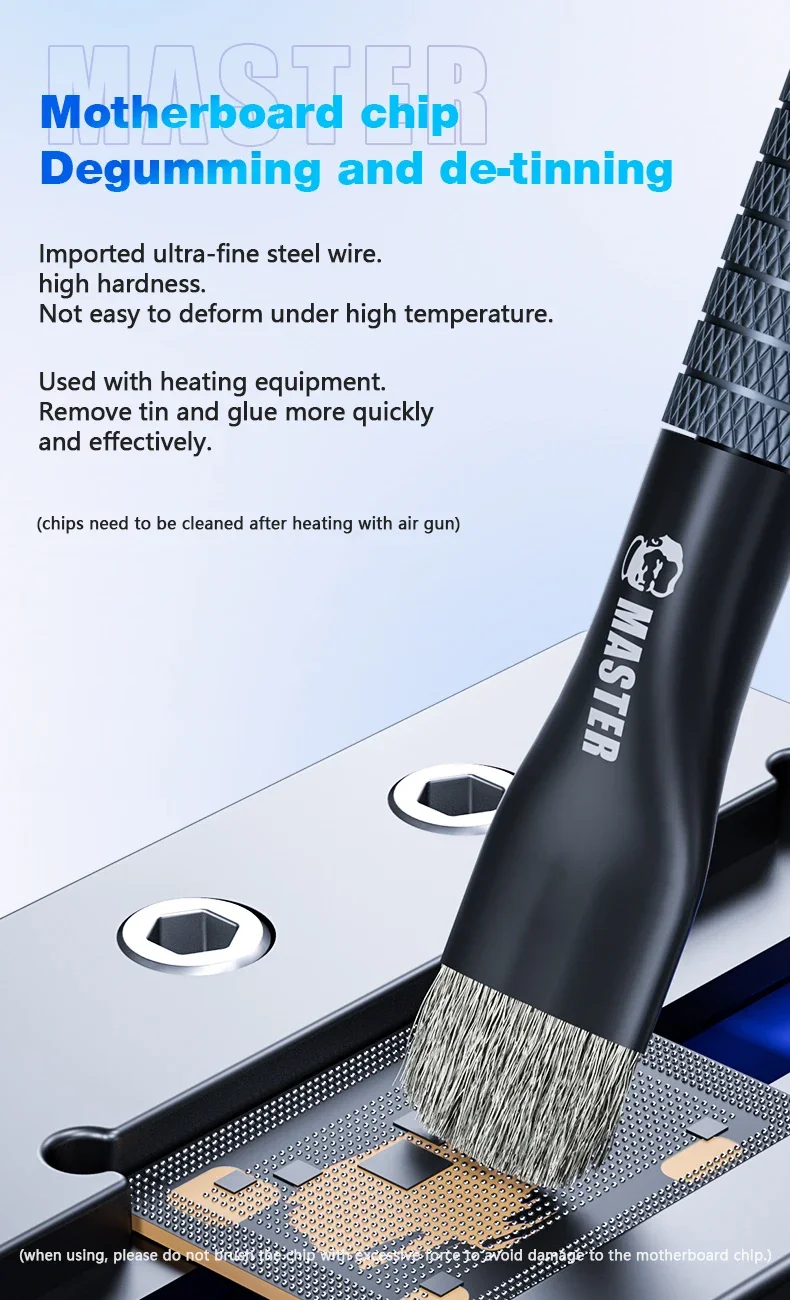 Imported ultrafine steel wire with high hardness and resistance to deformation at high temperatures, used in conjunction with heating equipment for faster and more effective removal of tin and glue (chips need to be cleaned after heating with an air gun)
