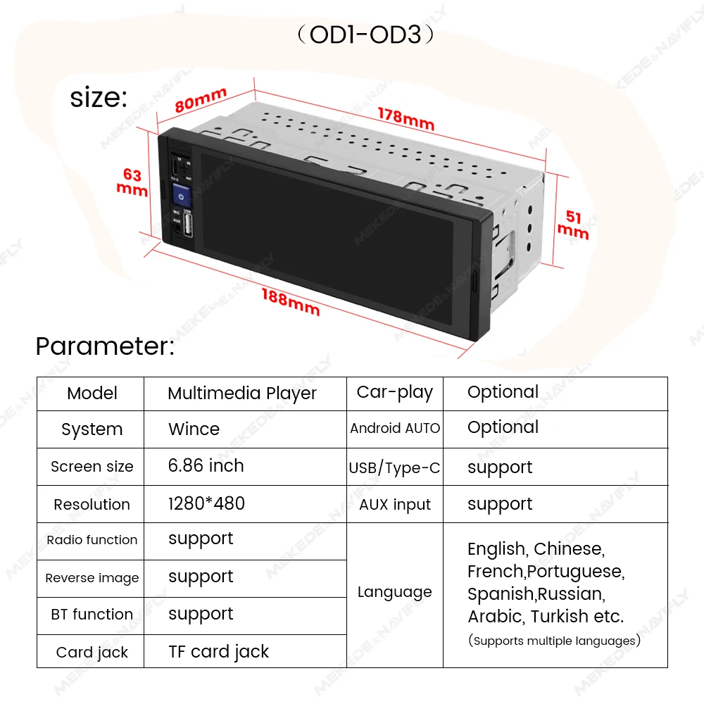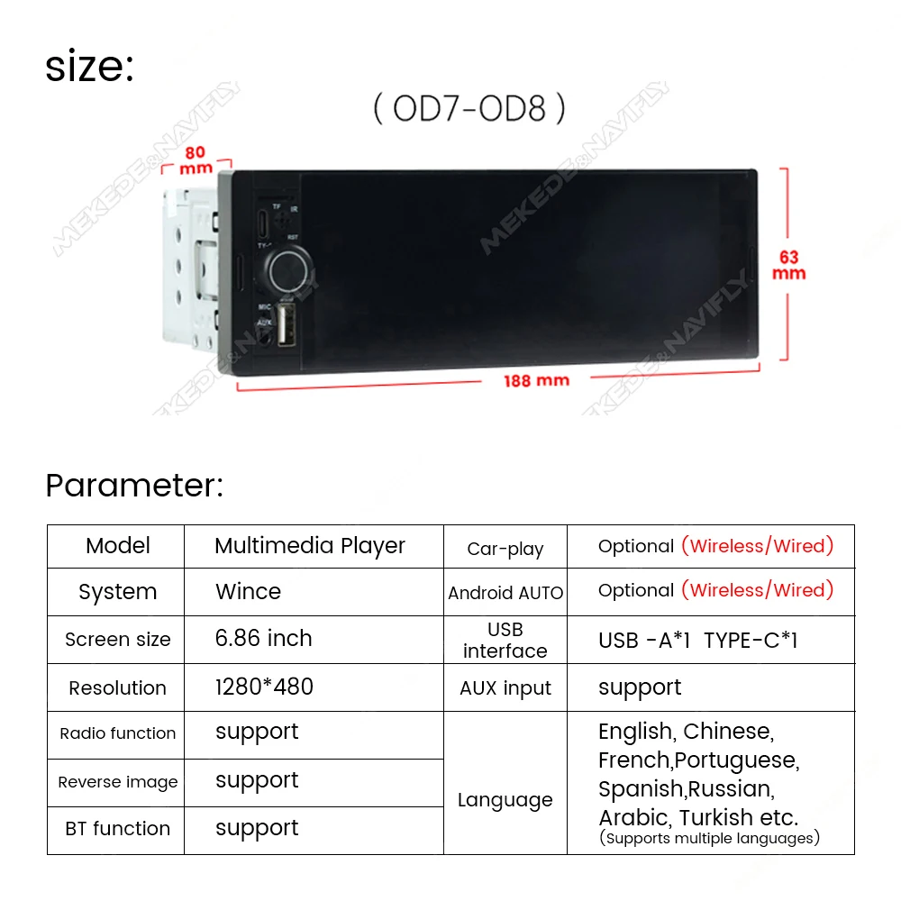 Nota: questa unità è solo lettore MP5, i nostri prodotti hanno 5 tipi di opto, si prega di acquistare in base alle proprie esigenze