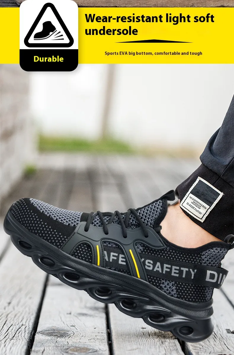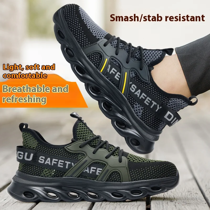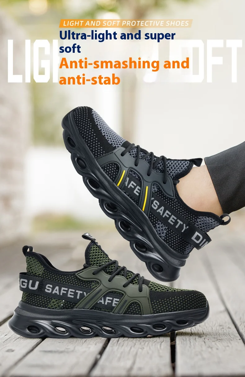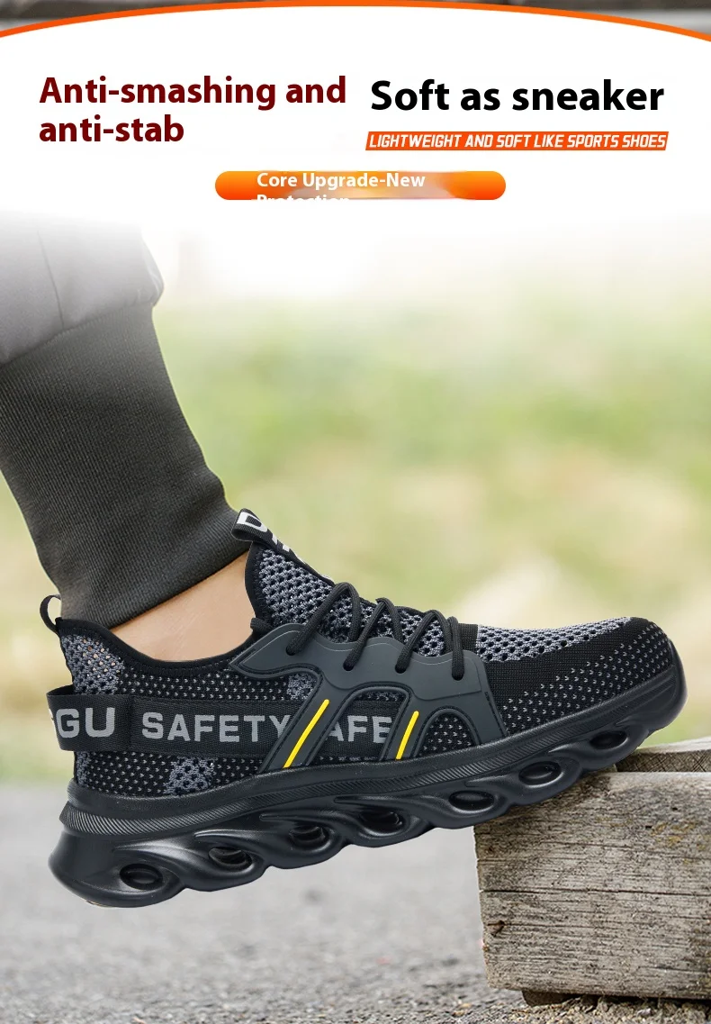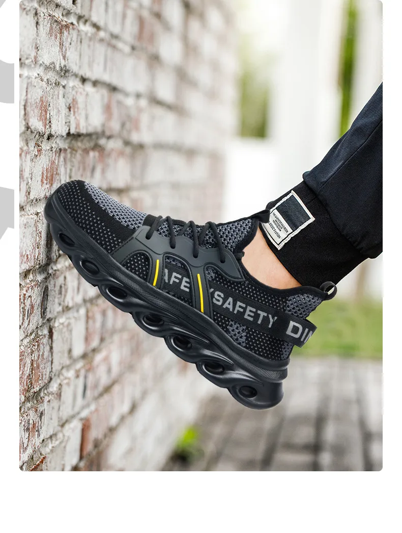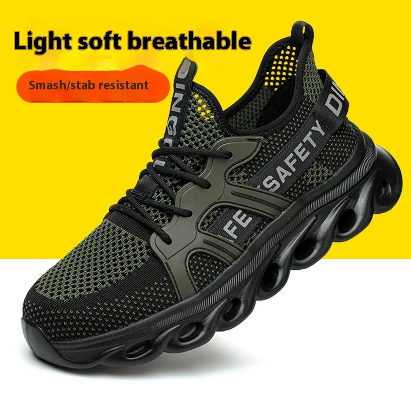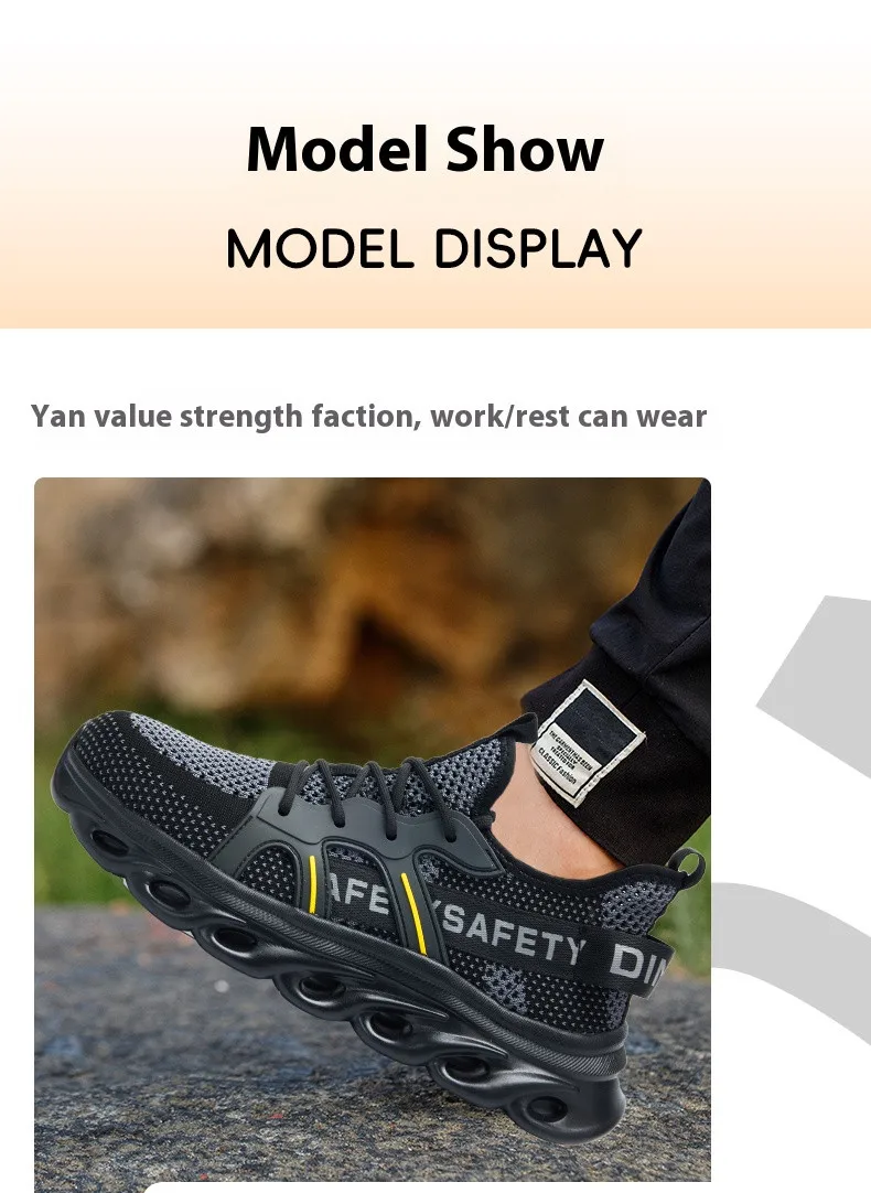 Mesh traspirante in estate Stivali antinfortunistici da lavoro Uomo Anti-smash Anti puntura Scarpe da ginnastica da lavoro Scarpe con punta in acciaio Scarpe protettive con lacci
