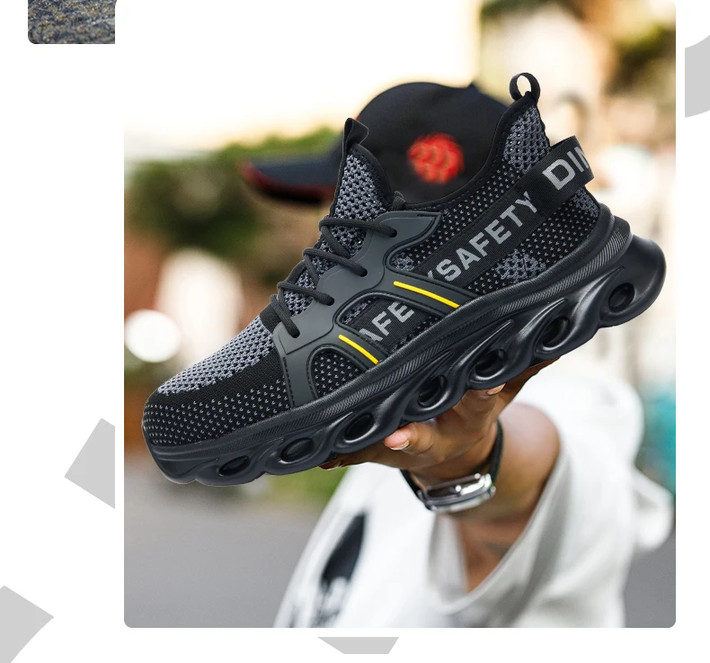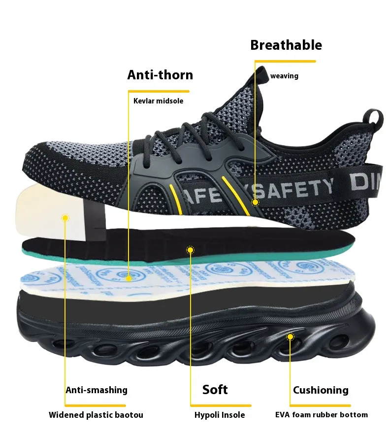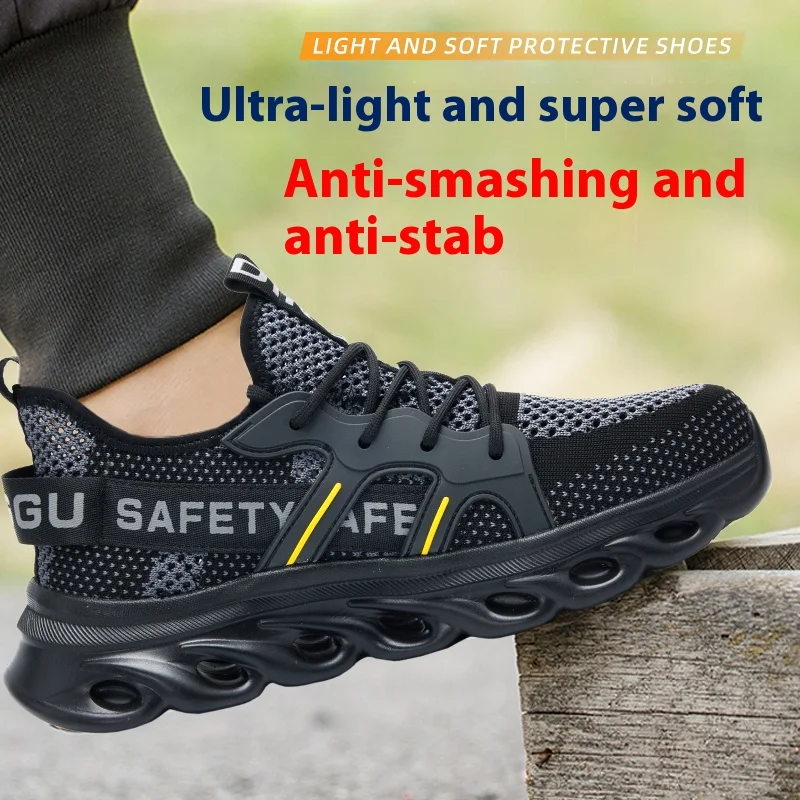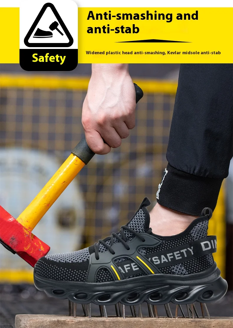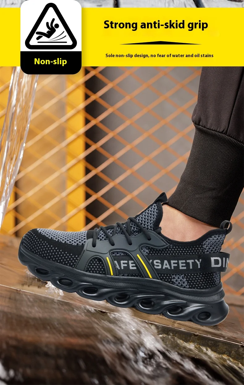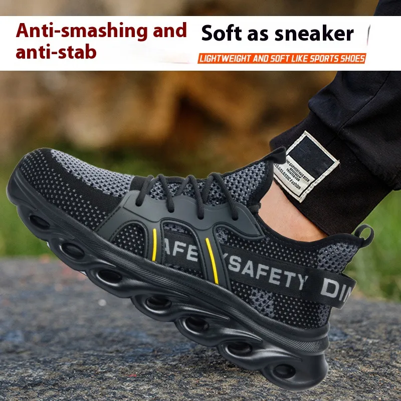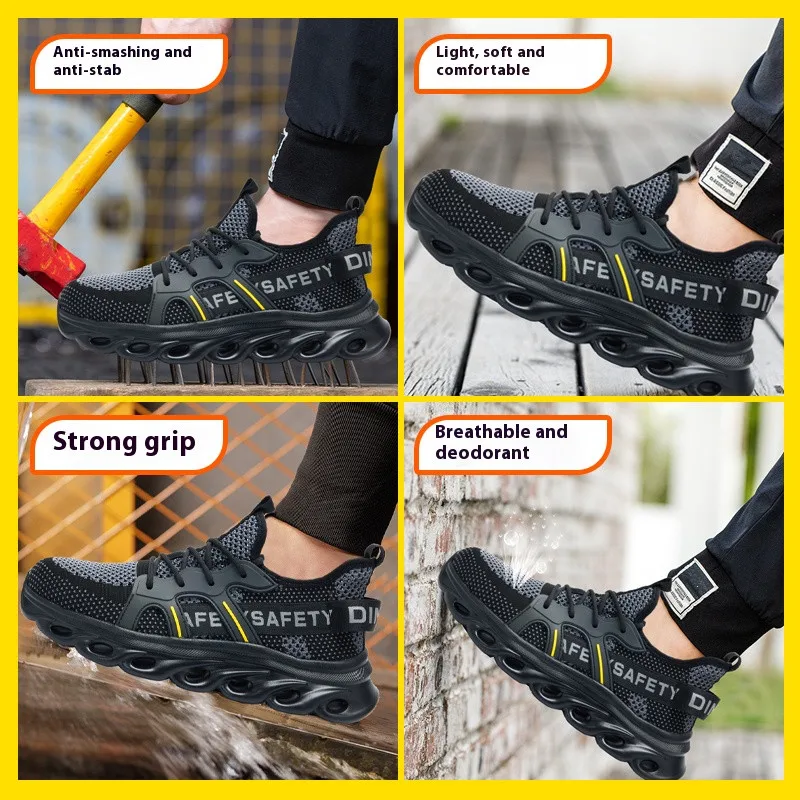 Mesh traspirante in estate Stivali antinfortunistici da lavoro Uomo Anti-smash Anti puntura Scarpe da ginnastica da lavoro Scarpe con punta in acciaio Scarpe protettive con lacci