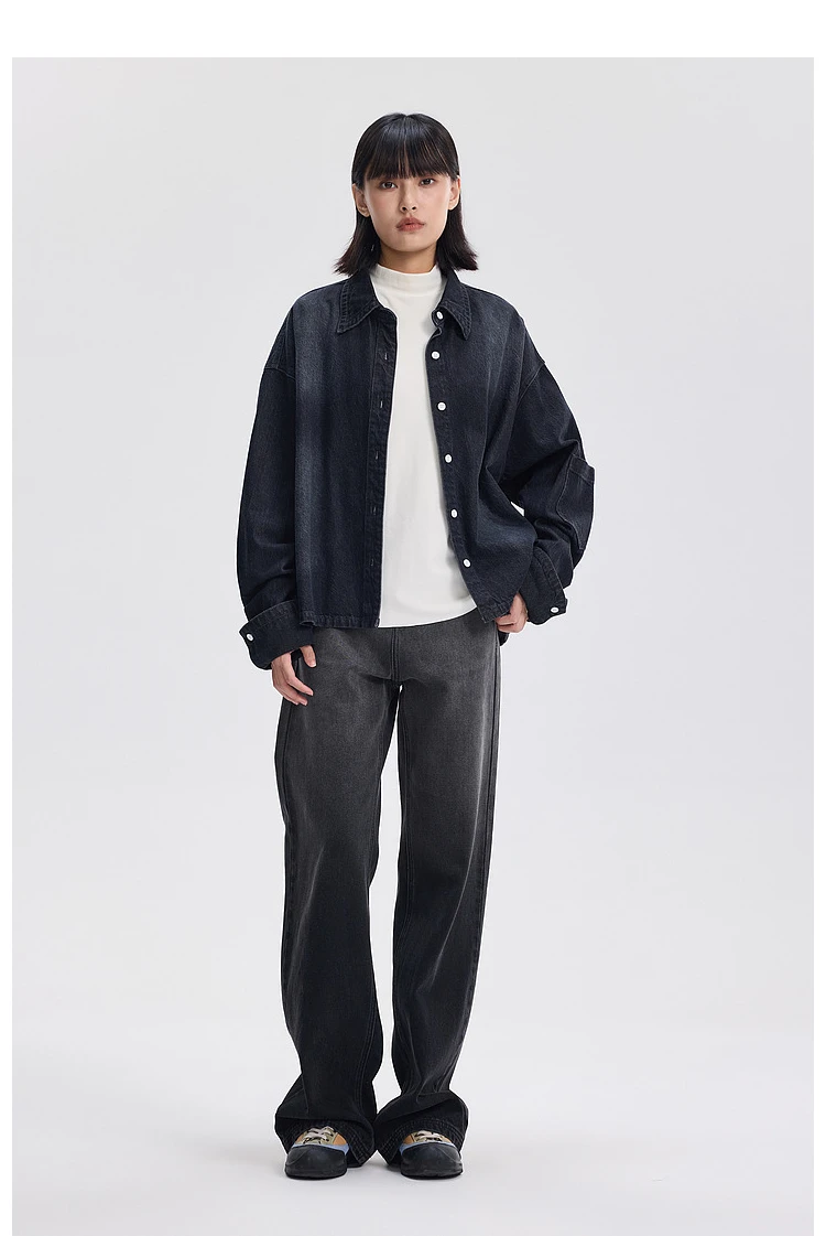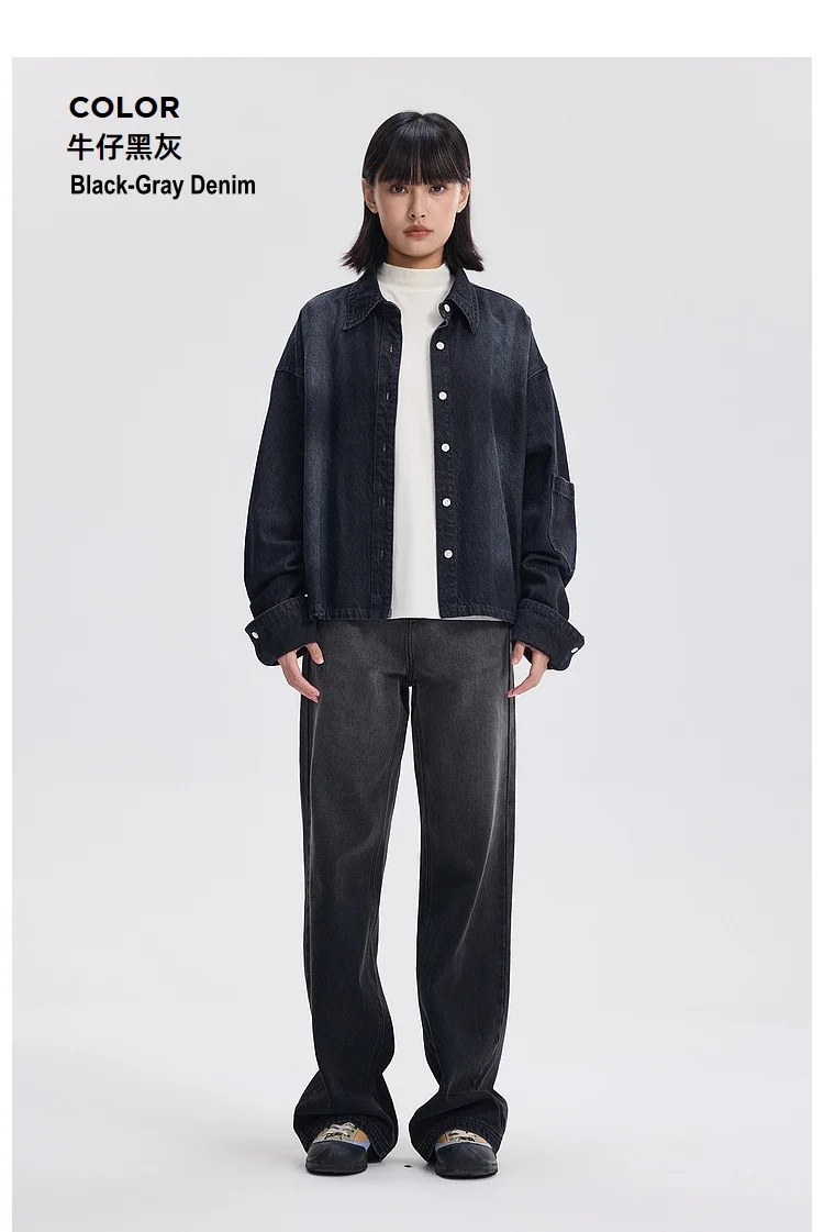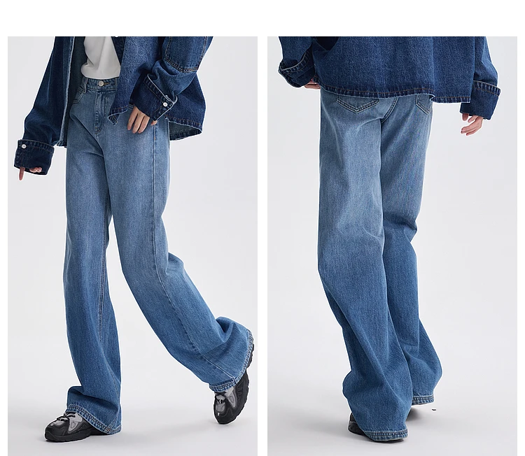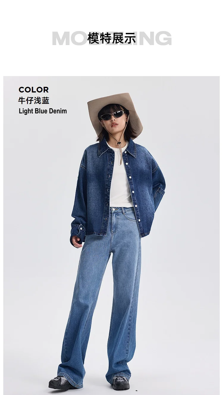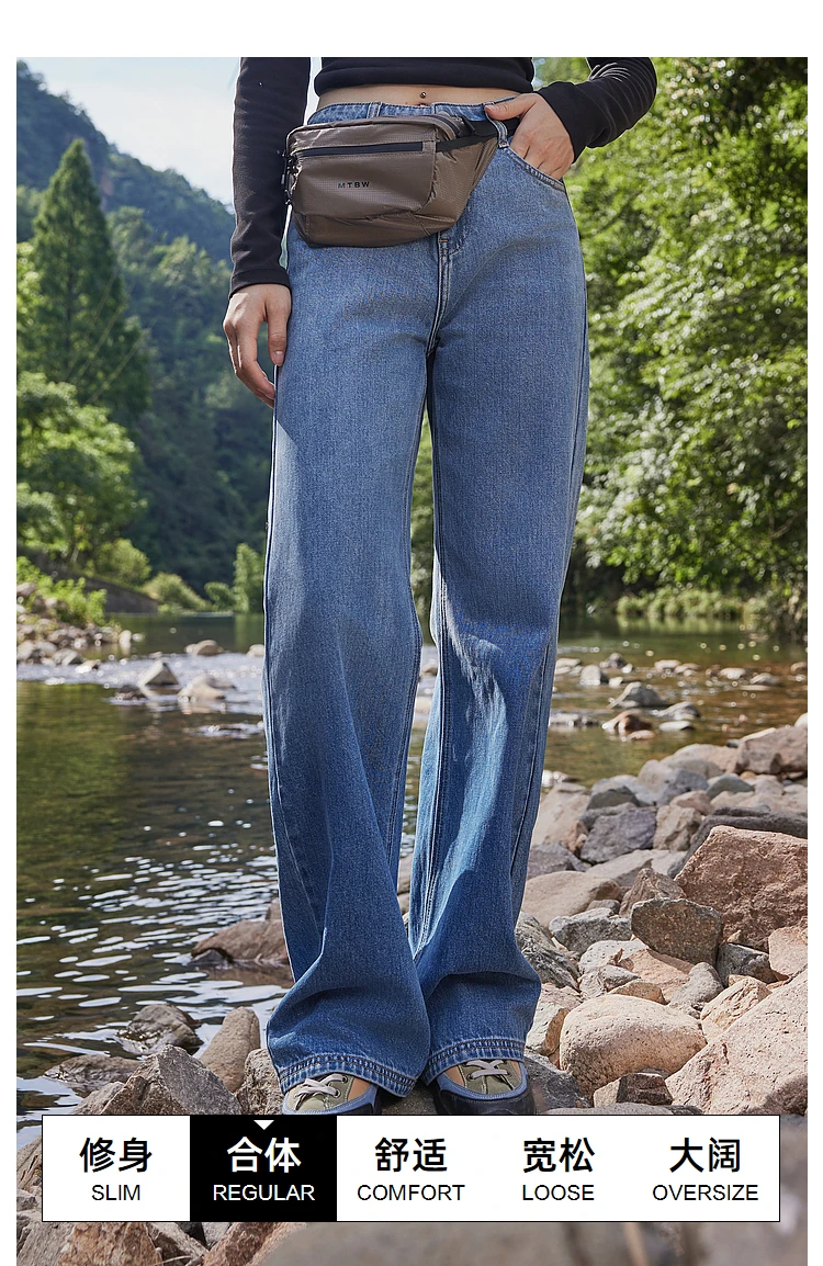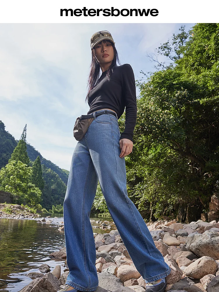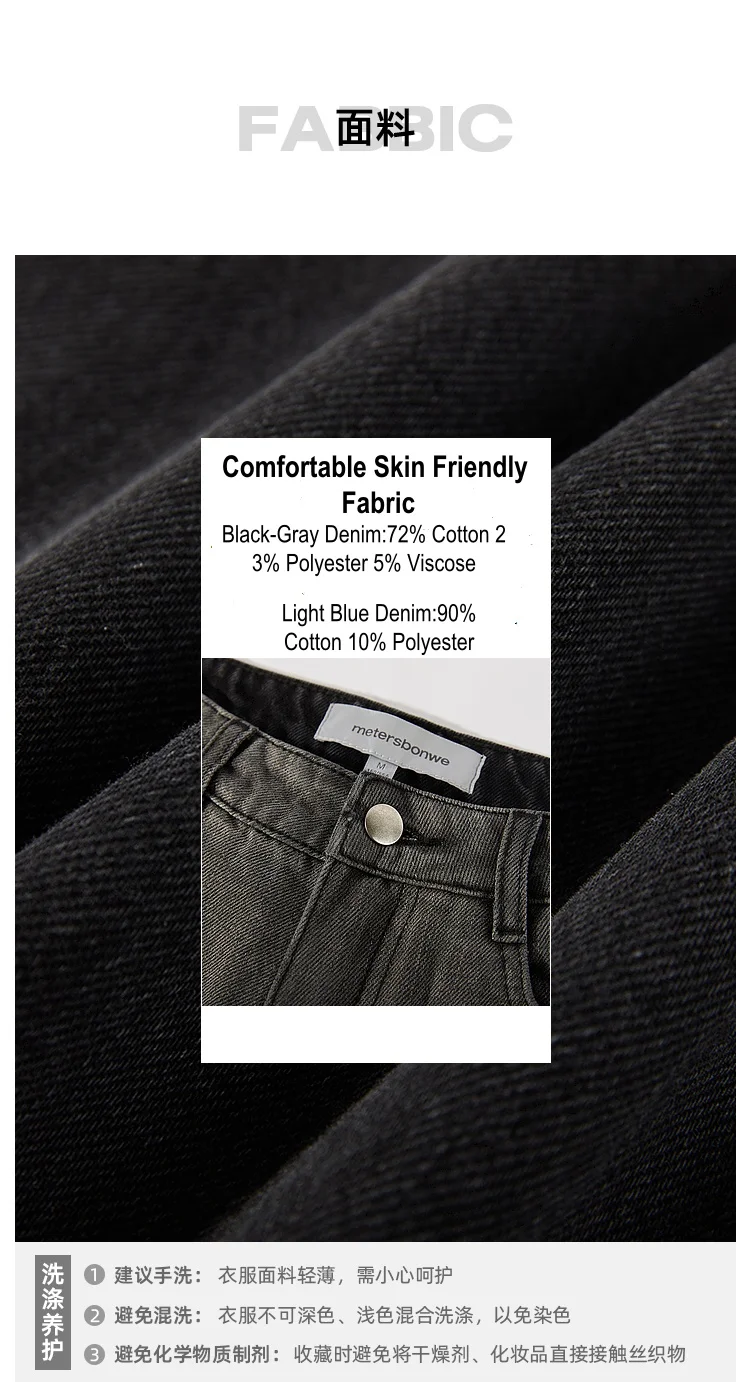 Metersbonwe Jeans denim a gamba dritta sfumati lavati da donna Pantaloni dimagranti a vita alta non elasticizzati Autunno Inverno Pendolari