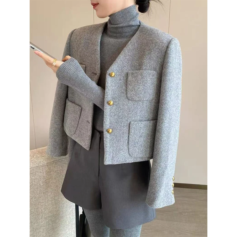 MEXZT Elegante misto lana Cappotti Moda donna Giacca corta di lana Inverno Coreano Pendolarismo Capispalla Donna Scollo a V Cappotto Nuovo