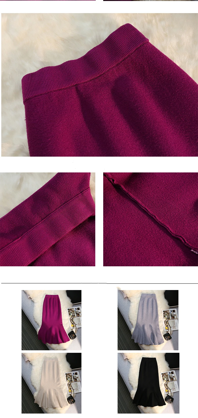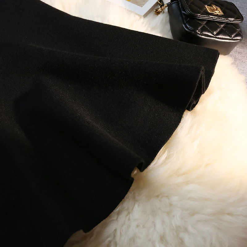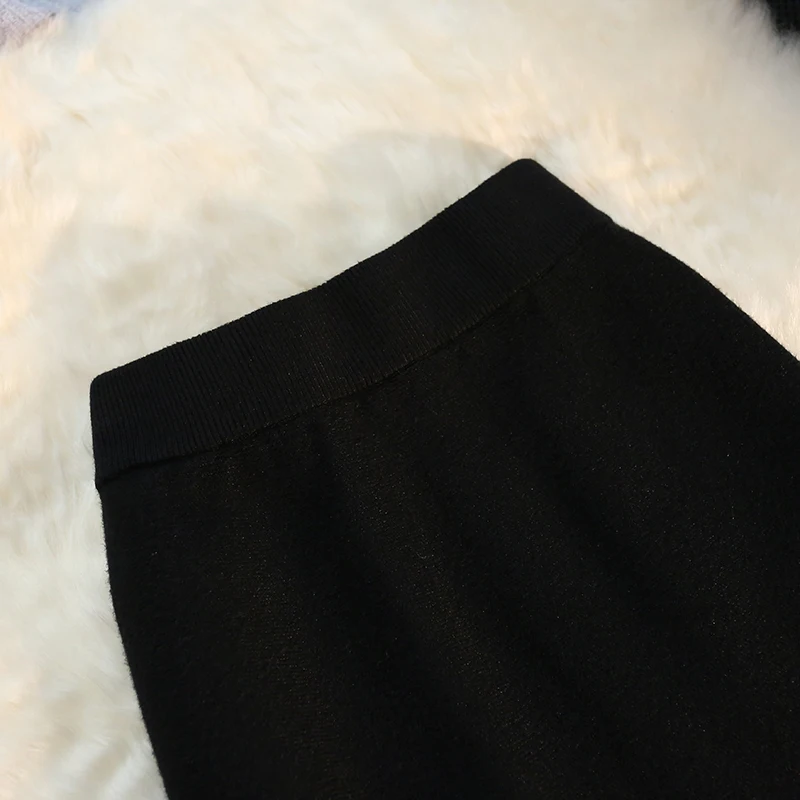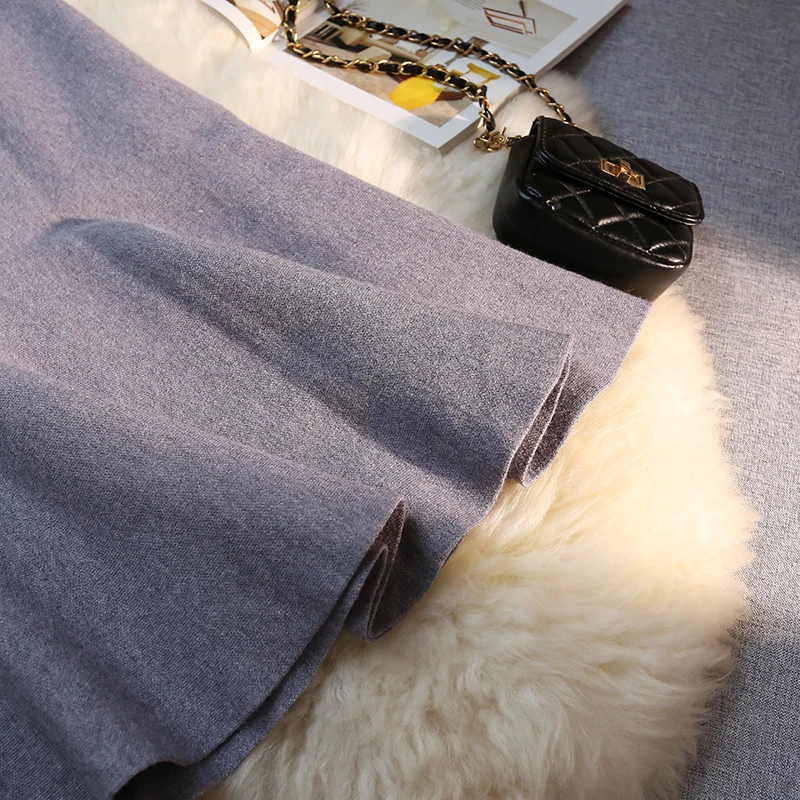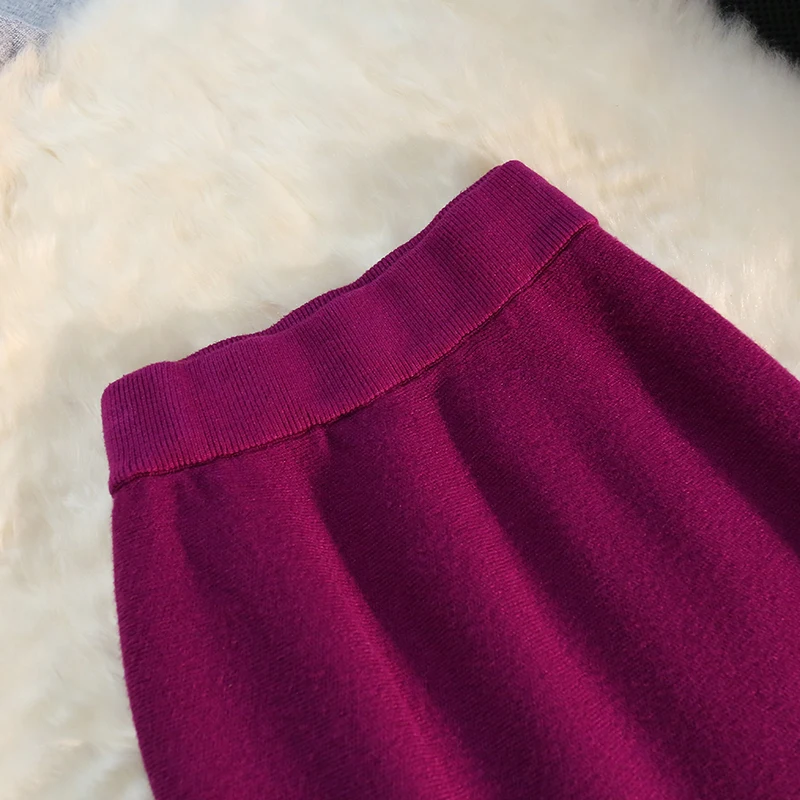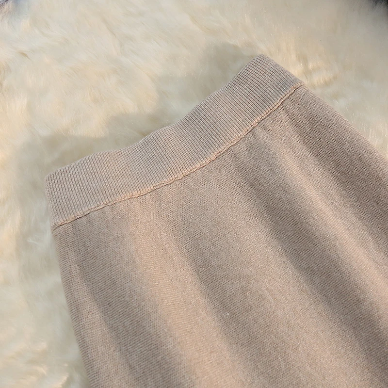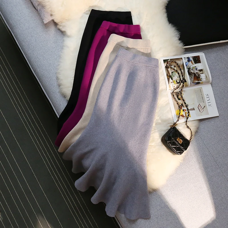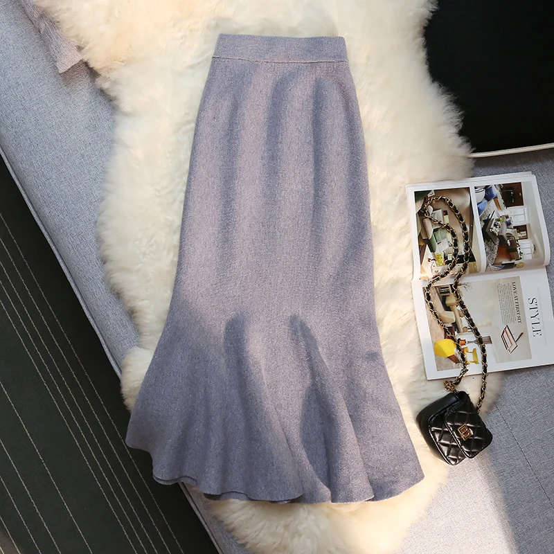 MEXZT Gonne lunghe in maglia vintage Gonna a sirena sottile a vita alta elastica da donna Autunno Inverno Gonne a tromba solide eleganti coreane Novità