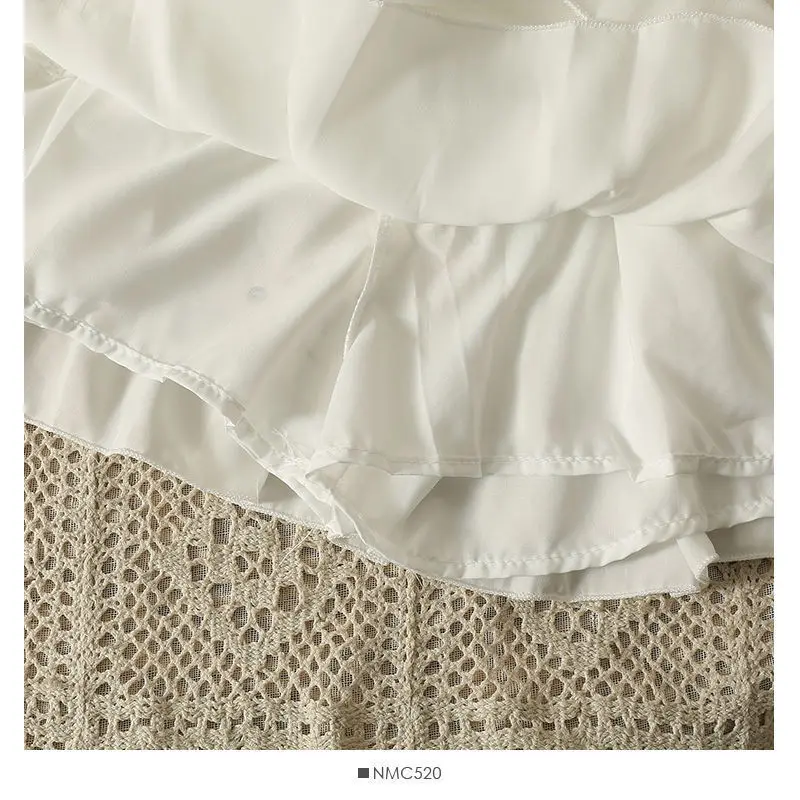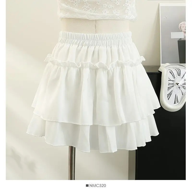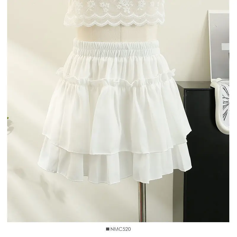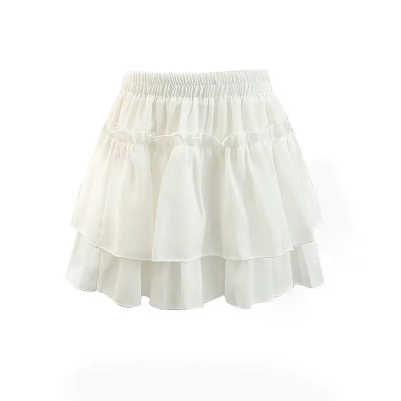 Mezza gonna bianca con orlo a torta Estate 2025 da donna Nuova minigonna sottile a pieghe a vita alta a pieghe di piccole dimensioni con decorazione di volant