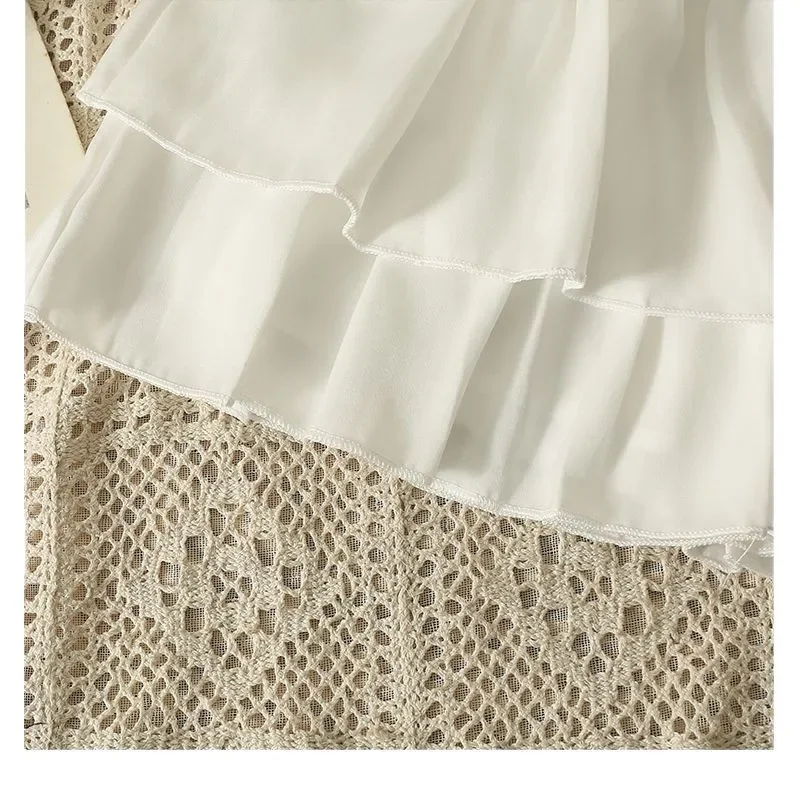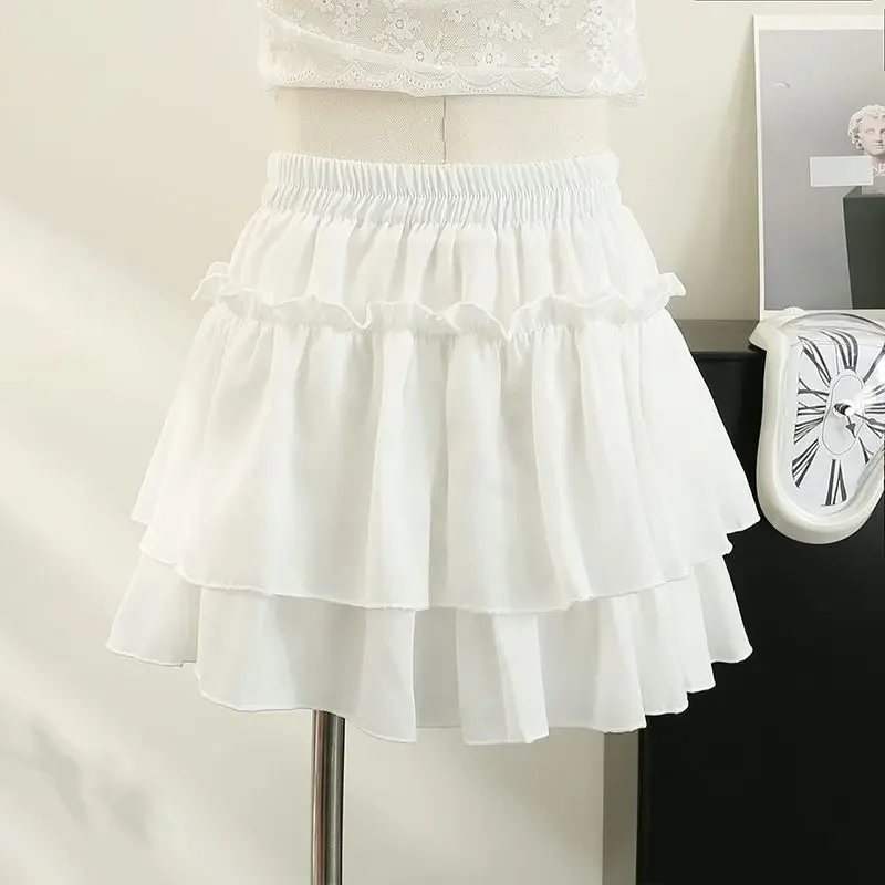 Mezza gonna bianca con orlo a torta Estate 2025 da donna Nuova minigonna sottile a pieghe a vita alta a pieghe di piccole dimensioni con decorazione di volant