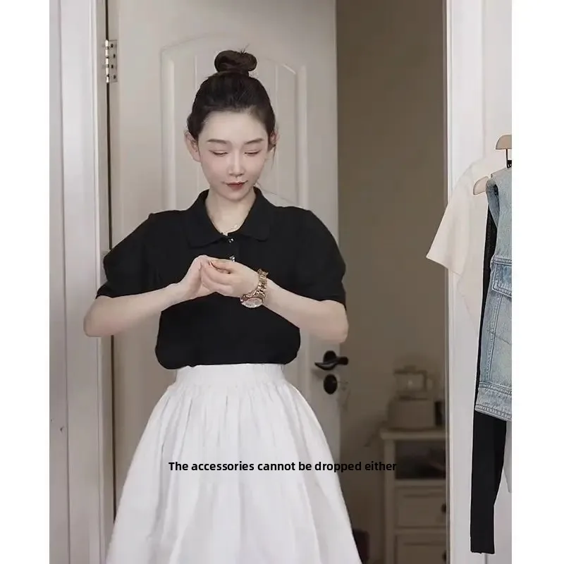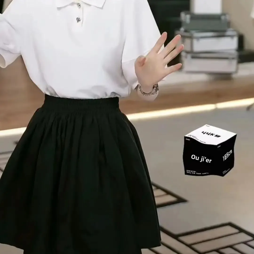 Mezza gonna di grandi dimensioni con tasca invisibile Gonna a pieghe sottile estiva bianca a vita alta Gonna corta dolce grasso MM