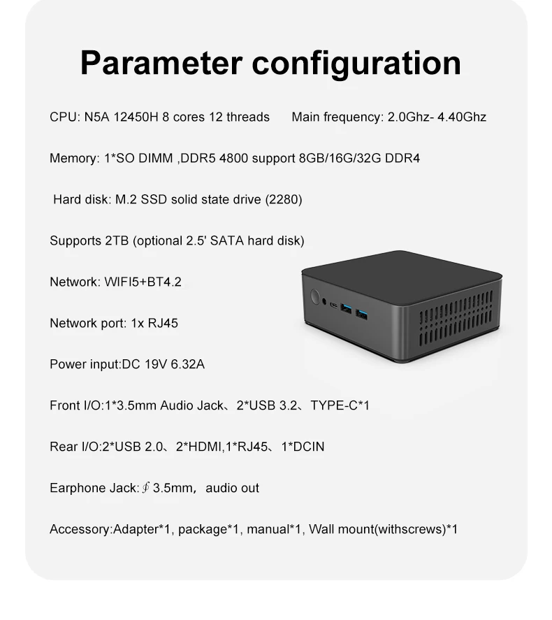 CPU: N5A 12450H 8 core 12 thread