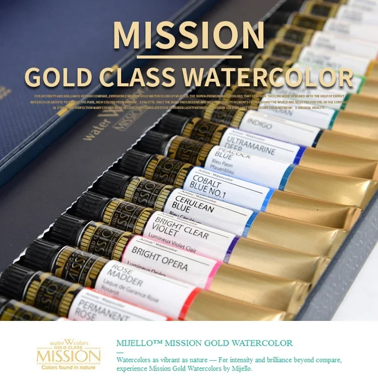 Mijello Misson Gold 24 colori 7ml Professiona Pittura ad acquerello ad alta concentrazione per artista Disegno Pittura Pennello Forniture 1Mijello Misson Gold 24 colori 7ml Professiona Pittura ad acquerello ad alta concentrazione per artista Disegno Pittura Pennello Forniture