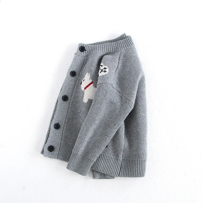 MILANCEL Giacca maglione per bambini primaverili 1-8 Y Jacquard Cute Dog Boys Cardigan monopetto con fibbia Top Maglione lavorato a maglia per ragazze
