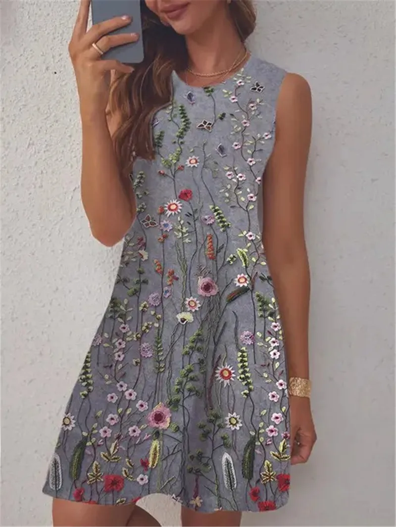 Mini abiti di tendenza da donna con motivo floreale Abiti estivi senza maniche con stampa floreale 3D Abito da donna da strada Abito casual Y2k Abbigliamento da donna