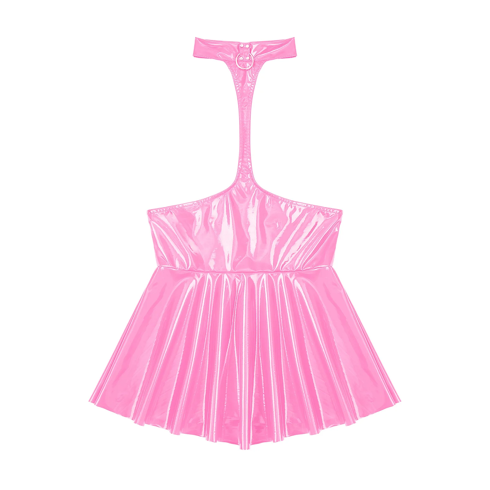 Caratteristiche: Realizzato in pelle verniciata di alta qualità, il colore della superficie è brillante e lucido, consistenza morbida, comodo da indossare. Abito senza maniche, petto aperto e design senza schienale ti fanno sembrare più attraente per il tuo amante. Abito da donna in pelle verniciata effetto bagnato con 2 bottoni a pressione sul retro del colletto per indossarlo facilmente. L’abito da donna in pelle verniciata è una buona scelta per provare una nuova esperienza di piacere diversa con il tuo amante. Perfetto per un appuntamento notturno, una notte di luna di miele, San Valentino, anniversario, prima notte di nozze, ecc.