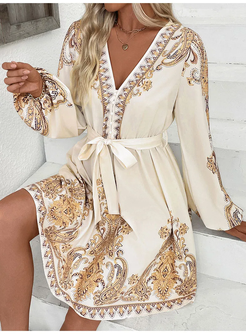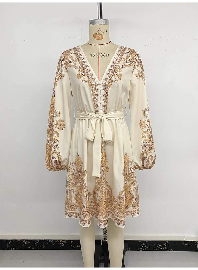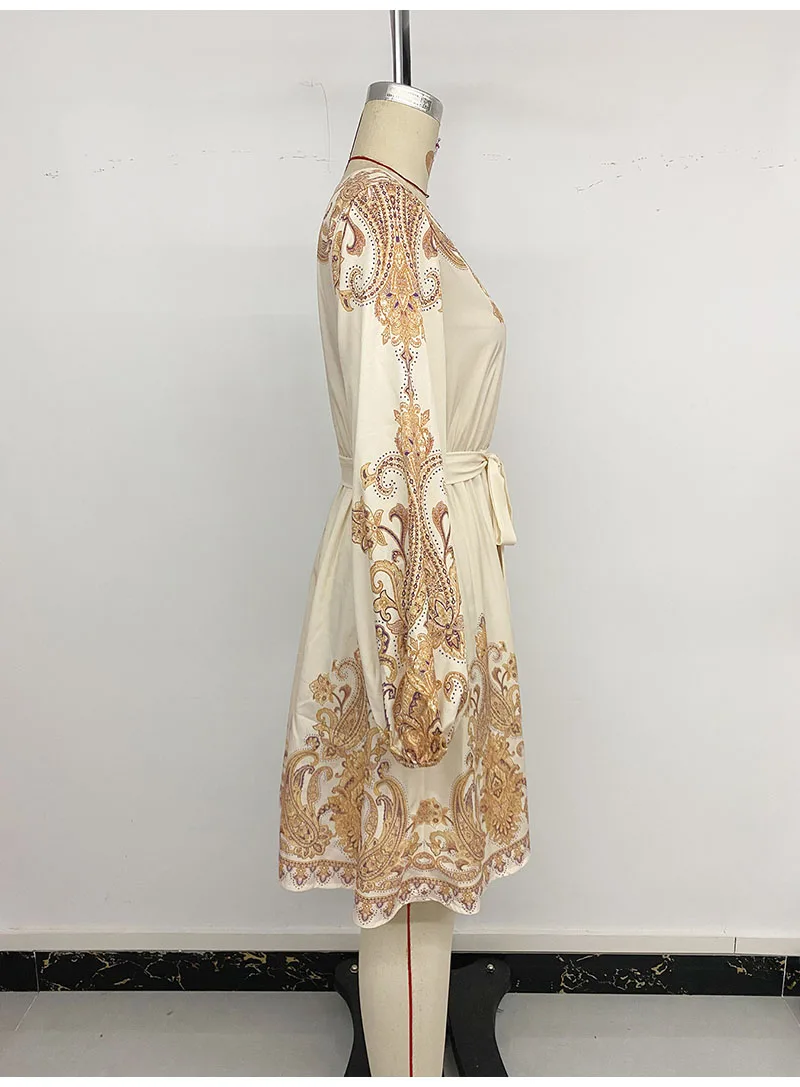 2024 Primavera Autunno delle nuove donne stampate a caldo moda stampata maniche a tromba monopetto grande altalena abito ampio per le donne