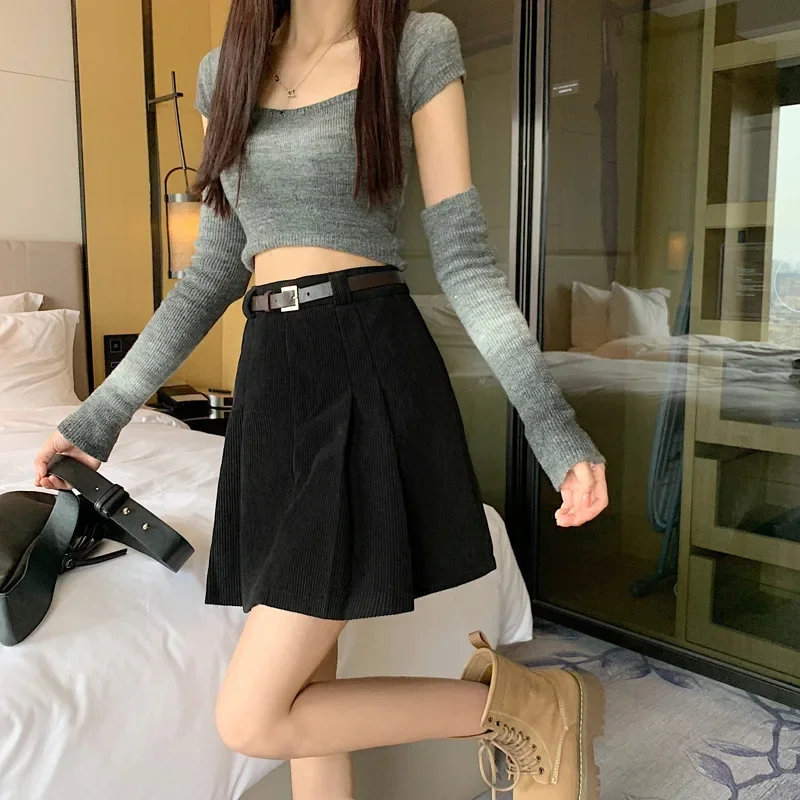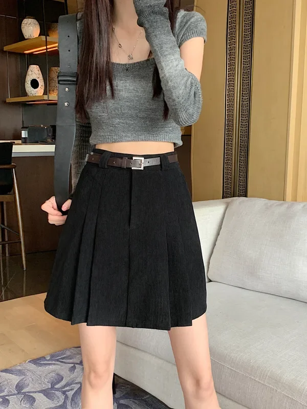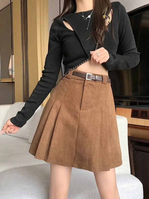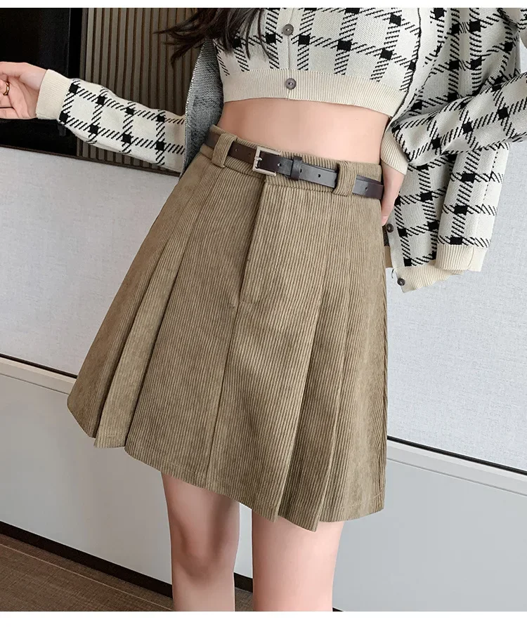 • Tessuto di velluto a coste:Realizzata in accogliente tessuto di velluto a coste, questa gonna offre calore e comfort, perfetti per la stagione invernale.