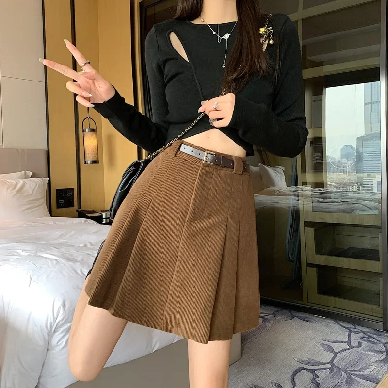 • Tessuto di velluto a coste:Realizzata in accogliente tessuto di velluto a coste, questa gonna offre calore e comfort, perfetti per la stagione invernale.