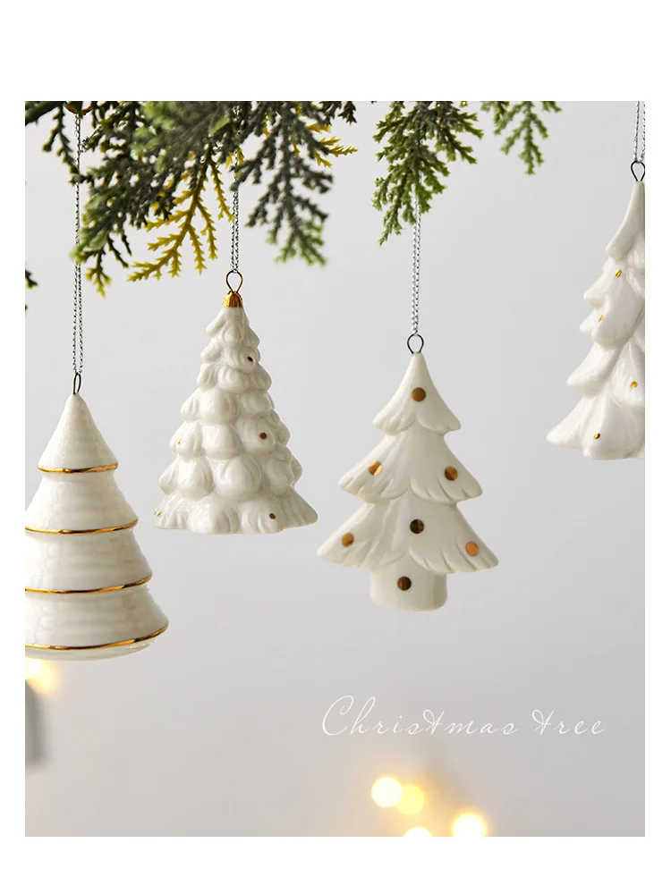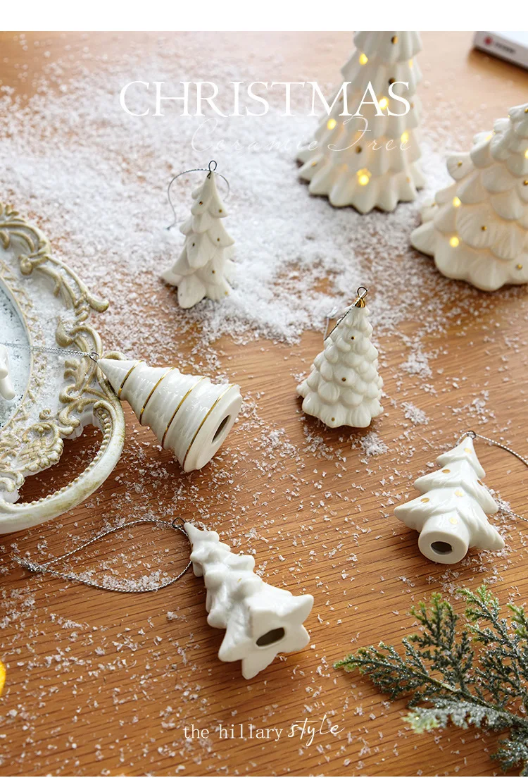 Mini albero di Natale in ceramica bianca, ornamento da tavolo natalizio, decorazioni natalizie per la casa Capodanno, vendita 2025