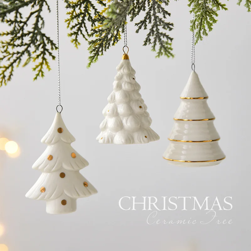 Mini albero di Natale in ceramica bianca, ornamento da tavolo natalizio, decorazioni natalizie per la casa Capodanno, vendita 2025