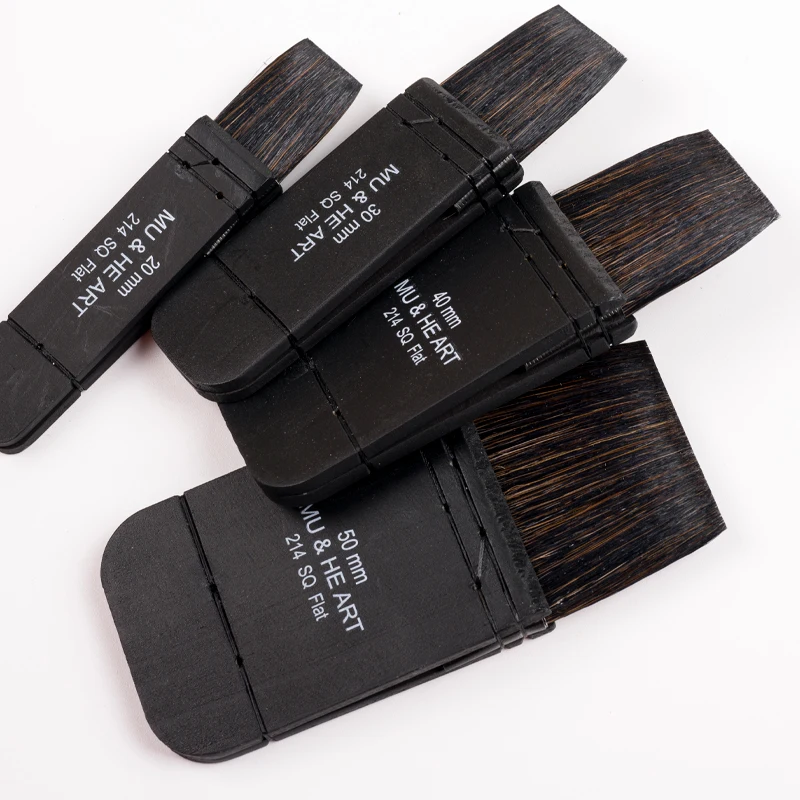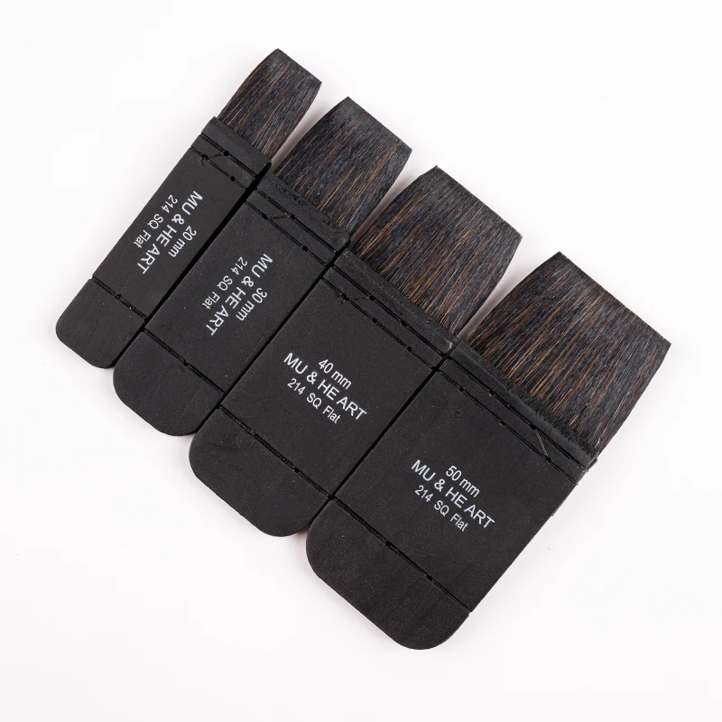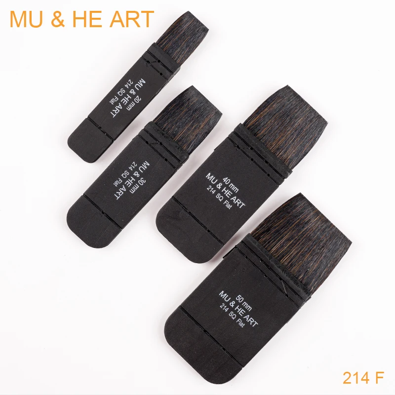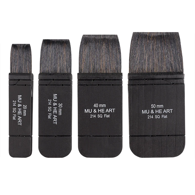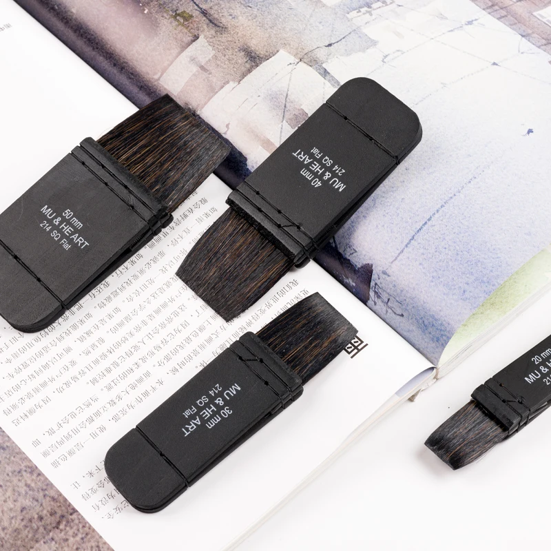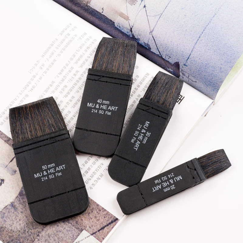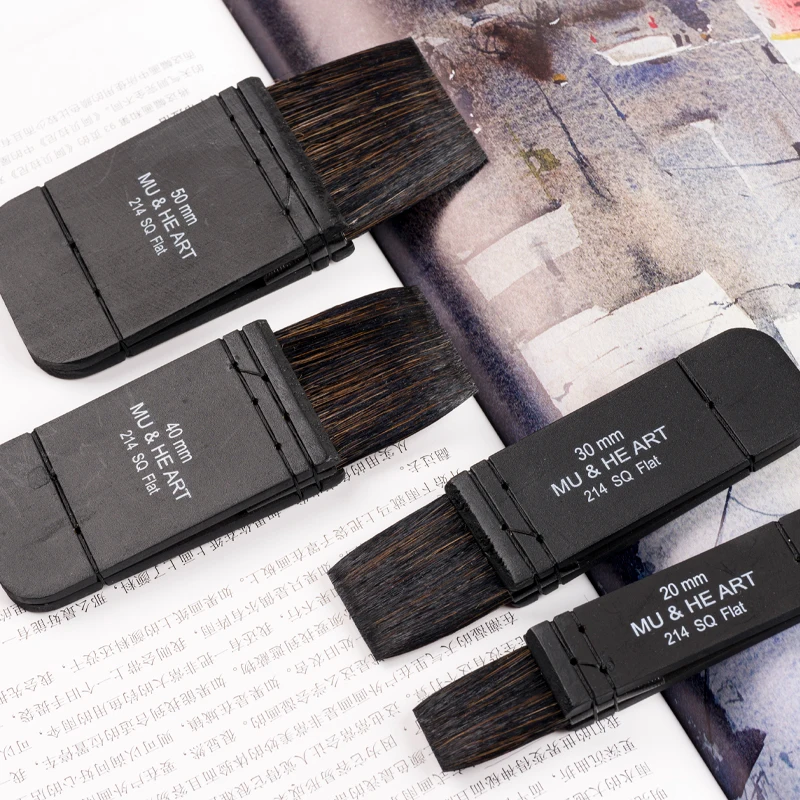 Mini breve pittura ad acquerello artista pennello per schizzi scoiattolo capelli misti forma piatta manico in legno nero professionale MU & HE ART 214F