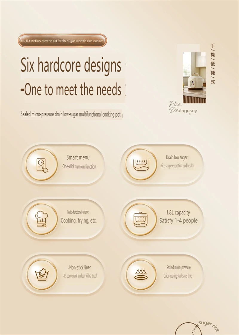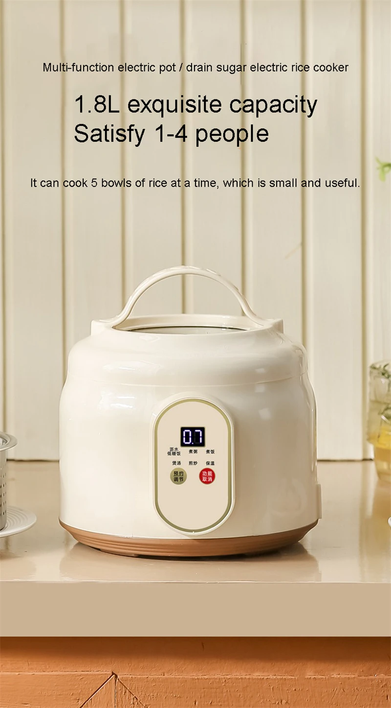 Mini cuociriso da 1,8 litri pentole antiaderenti elettriche per cucinare cuociriso multifunzionale 1-2 persone elettrodomestico per la cucina