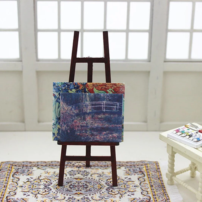 Mini decorazione in legno cavalletto artista Triange Art cavalletto titolare della carta da tavolo in legno stand per esposizione di nozze casa delle bambole 1pc