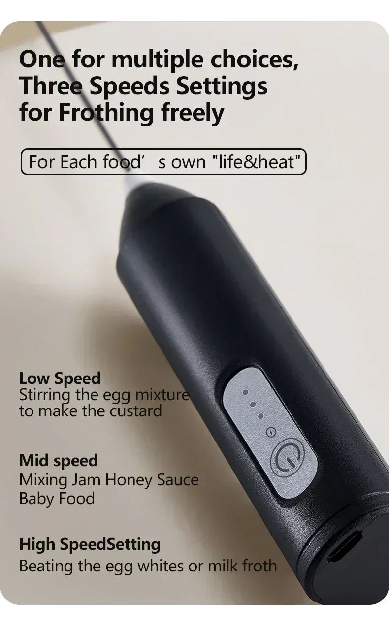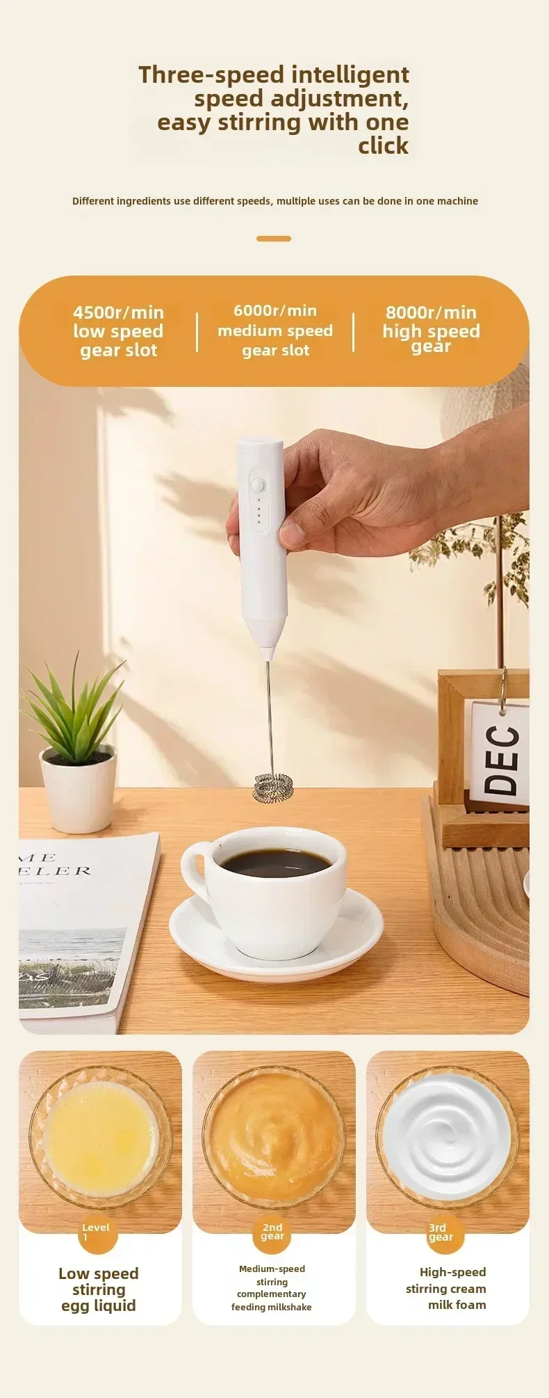 Montalatte elettrico senza fili Ricarica USB Schiumatore per latte portatile a 3 velocità Mini frullatore per caffè Cappuccino Schiuma Maker Frusta