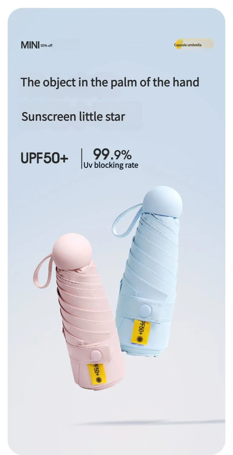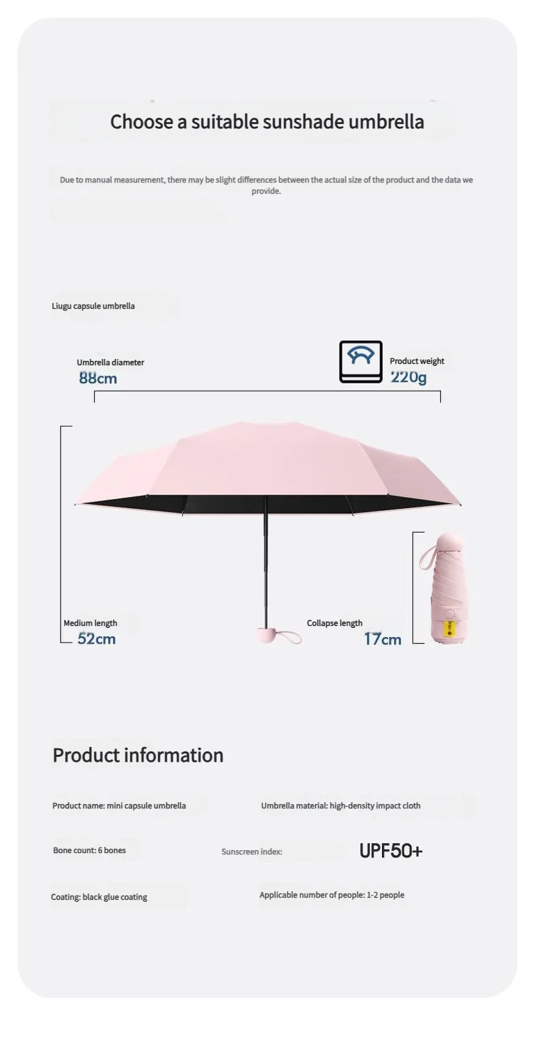 Mini Ombrello a capsula Ombrello a cinque pieghe a sei coste UPF50+ Protezione UV Ombrello da pioggia pieghevole compatto per tutte le stagioniPensa ad un Regalo Unico e Utile per le Persone a te Vicine!! Regala un buono a partire da € 10,00 a € 300,00
