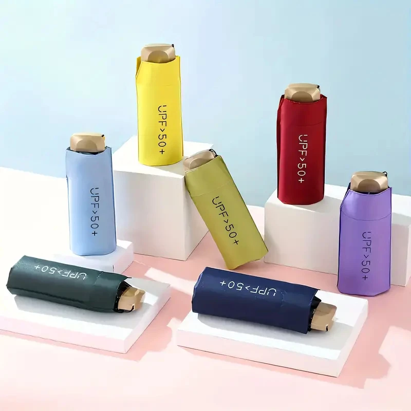 Mini ombrellone piccola tasca ombrellone da viaggio pioggia ombrellone pieghevole in vinile protezione UV parasole tasca parasole capsula