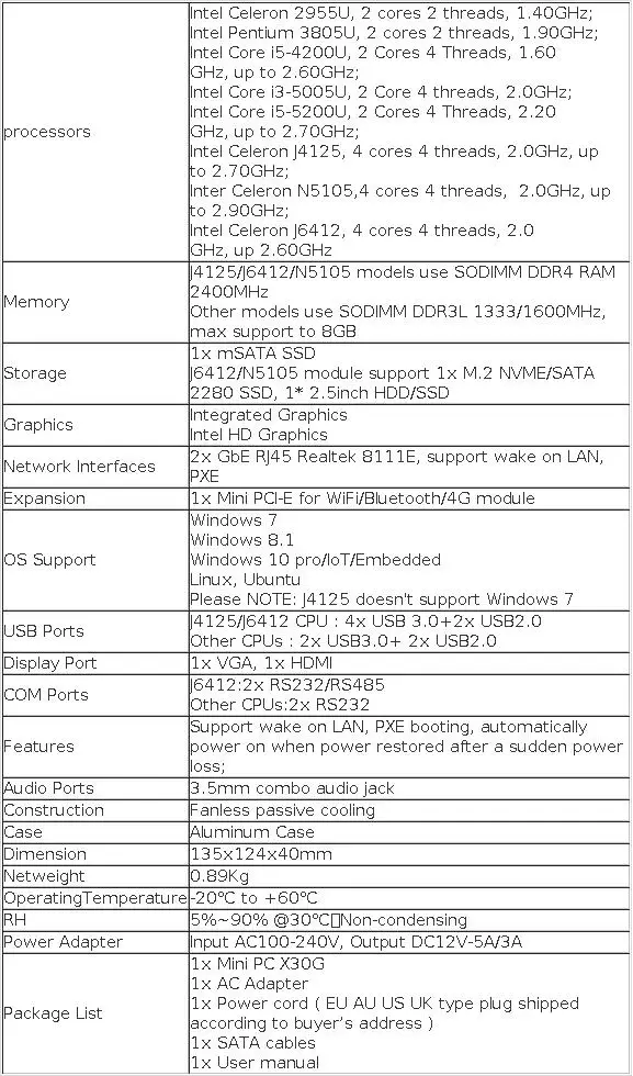 3.Il mini PC viene fornito senza modulo LTE 3G/4G preinstallato, contattaci se necessario.