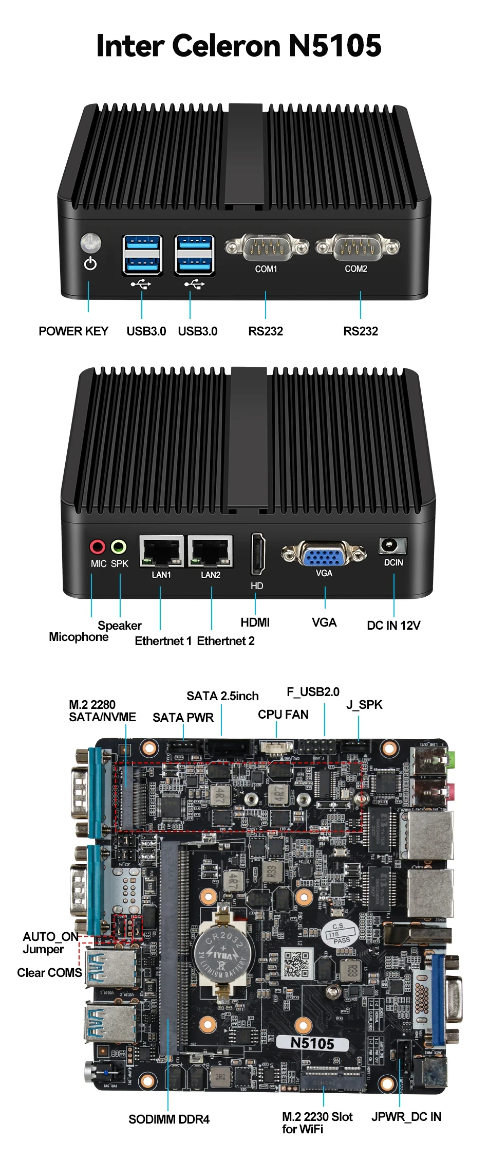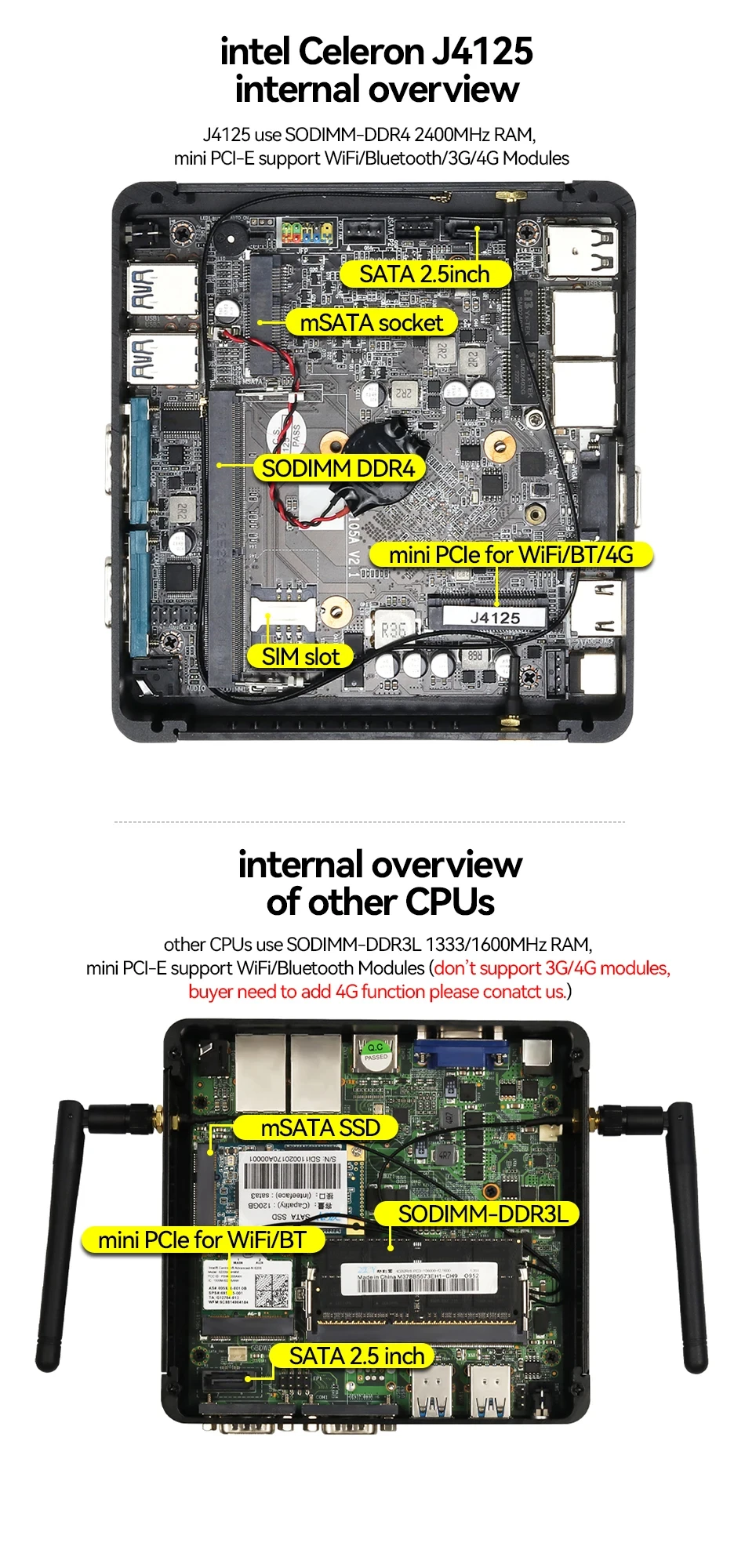 1.Acquista nessuna RAM Nessuna opzione SSD, il mini PC viene fornito senza WiFi ed antenne preinstallate;